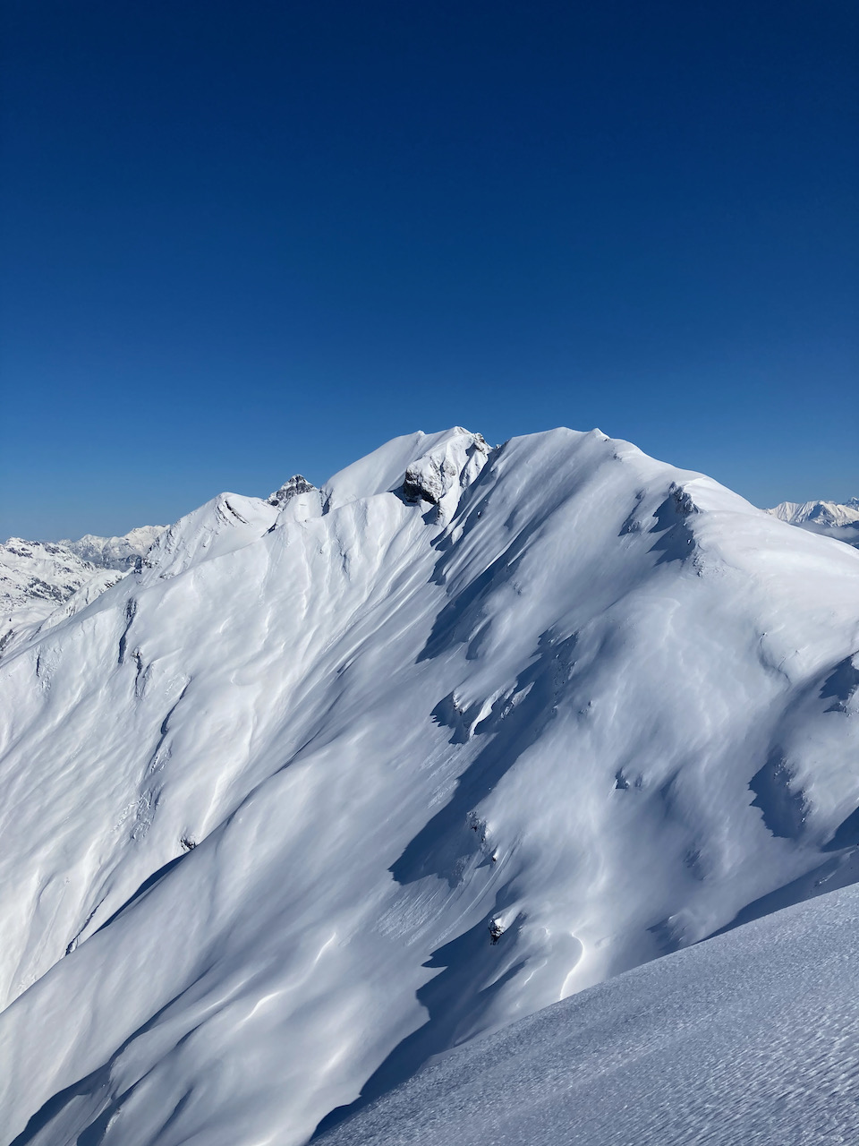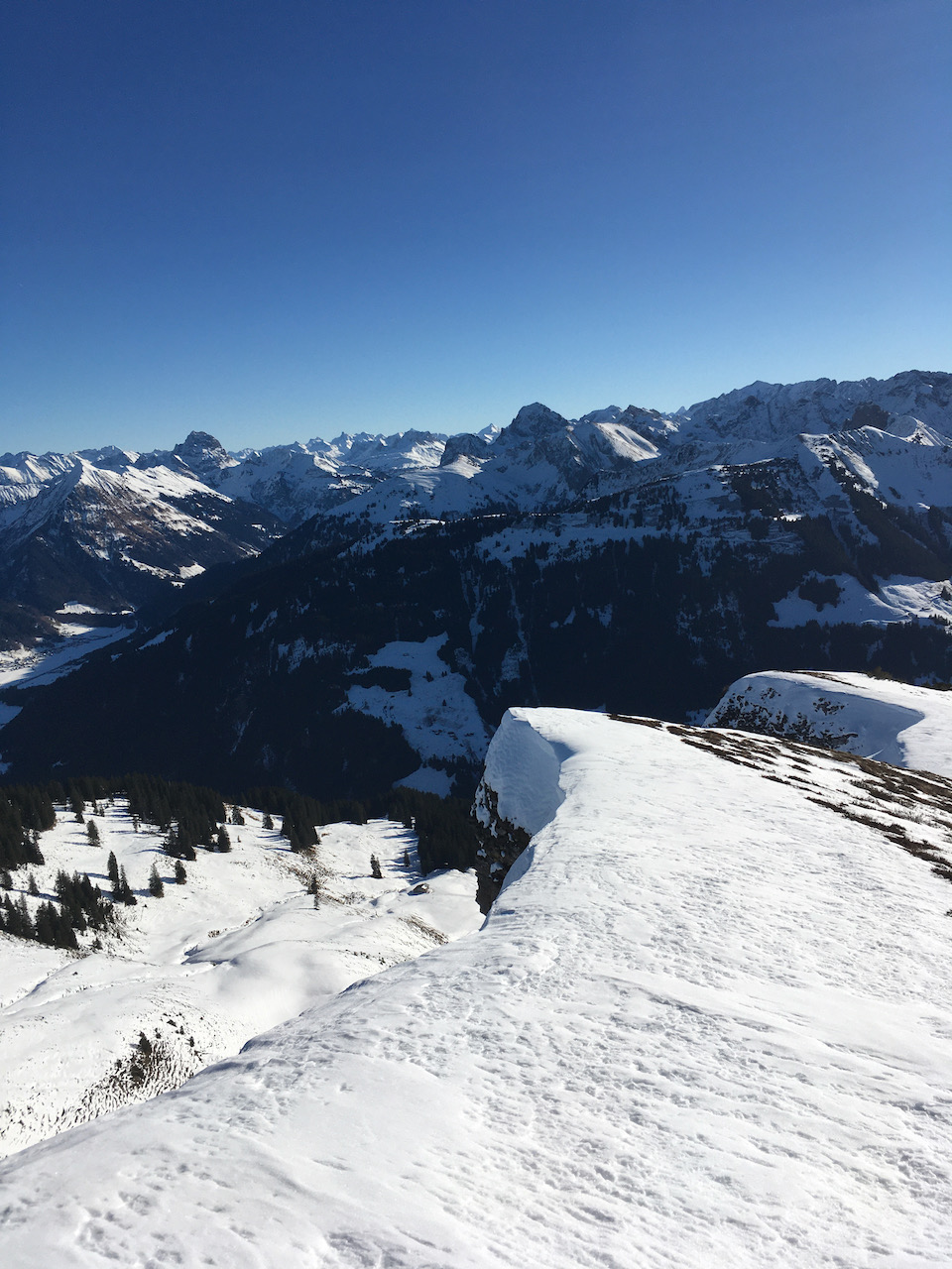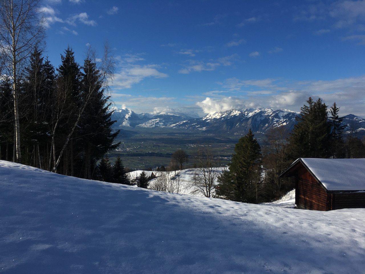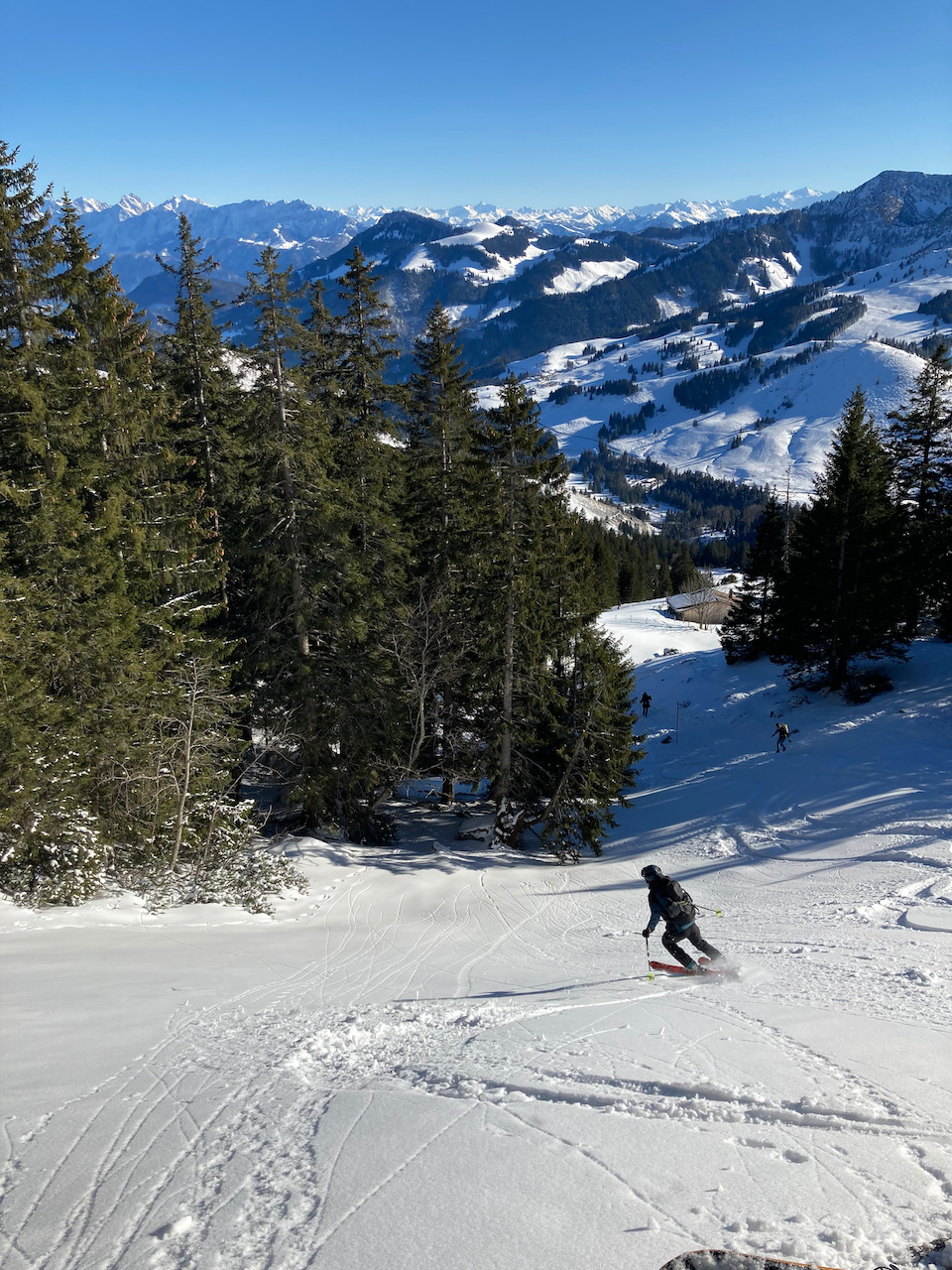 Klassische Pistentour im Laternsertal, relativ vui los. Variante: vorm Gipfelaufschwung rechts rüber auf den Berg danem, hod super ausgschaut.