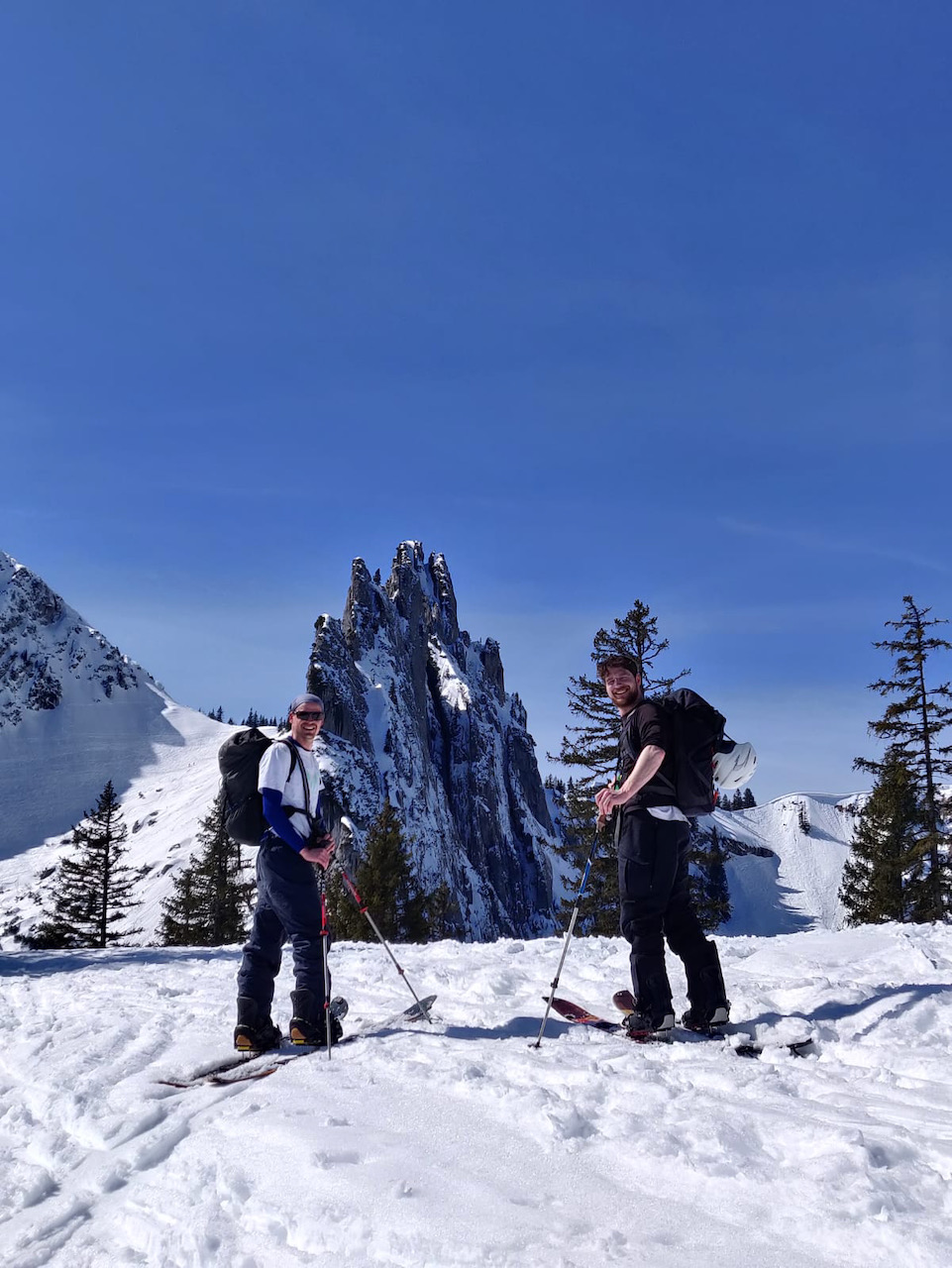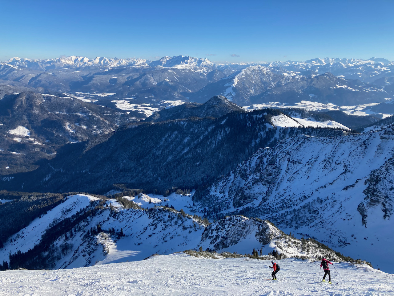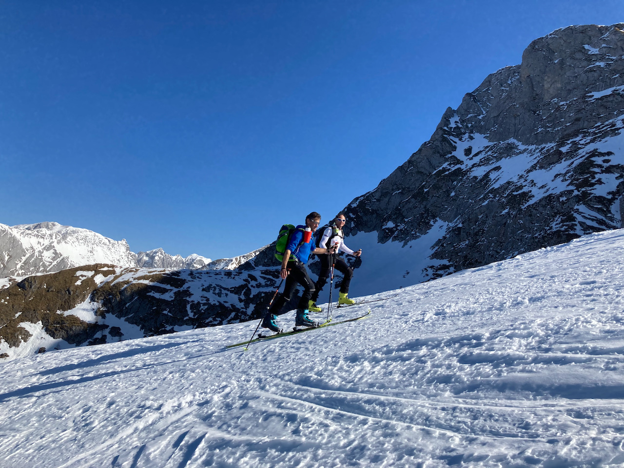 Eine Genuß-Reim wie ausm Bilderbuch! Wenig los, teilweise unverspurte Hänge, schöner Firn und wenig zum drong - und als Highlight hods a Weißwurschtfrühstück aufm Blankensteinsattel gem! Richtige schene Rundn mit extrem vui Alternativmöglichkeiten zu Abfahrt und Aufstieg. Wir ham uns für den wunderbaren Hang zu de Schneeböden entschieden, anstatt direkt zum See abzufahren. Ab Blankensteinsattel bis auf kurze Tragepassage Abfahrt bis zum Parkplatz möglich.