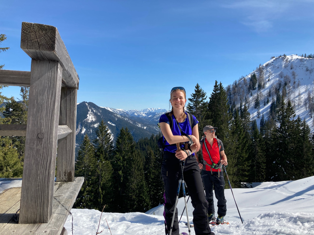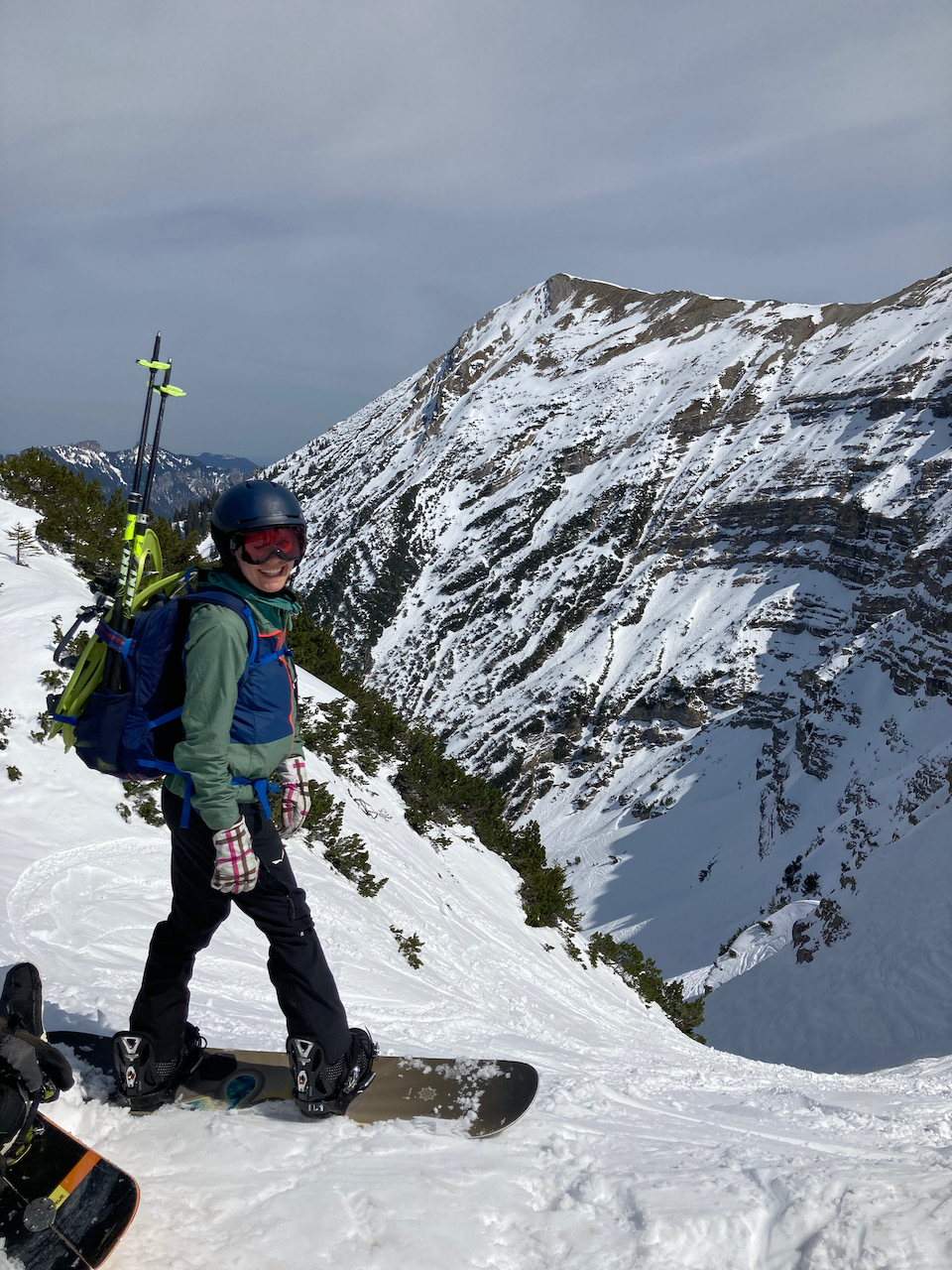 Erste Splitboardtour für Lena und Tille. Parkplatz Lacherspitze 5€. Forststraß bis zum Eingang ins Lacherkar einwandfrei (die südlichen Hänge abseits warn sehr aper). Der steile Aufstieg übers Lacherkar war zu eisig, dann liaba nach rechts queren (Aufstieg zum Wildalpjoch) und gmiadlich Sonne genießen. Schena unverspurter mini Hang inklusive :) Ausblick wie immer deluxe!