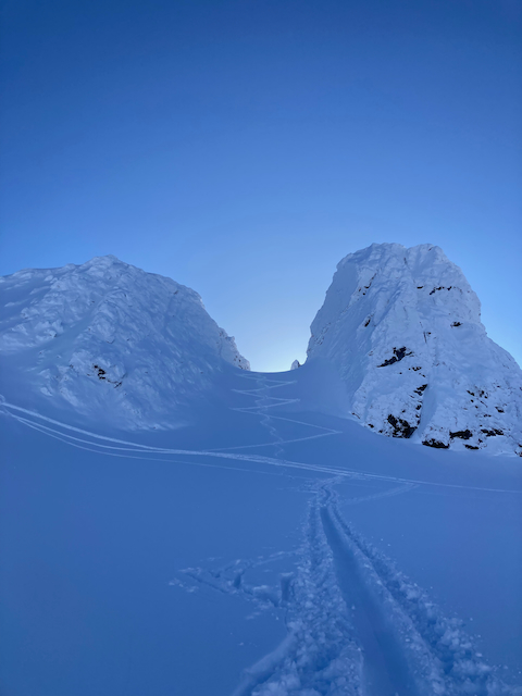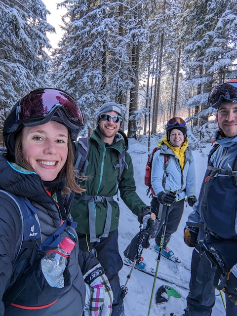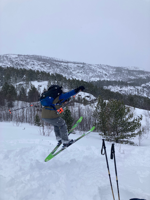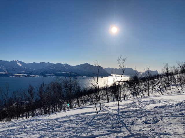 Da immer no alle Straßen gesperrt warn, samma über Finnland und Schweden zruck nach Tromsø gfahn. Weil ma sau guad durchkema san, hamma uns no a Abschlusstour kurz vor Tromsø gönnen kinna. 800hm aufegast und unten wunderschene Powderturns durchn enga Birkenwoid, a Traum! Nächst Jahr wieder!