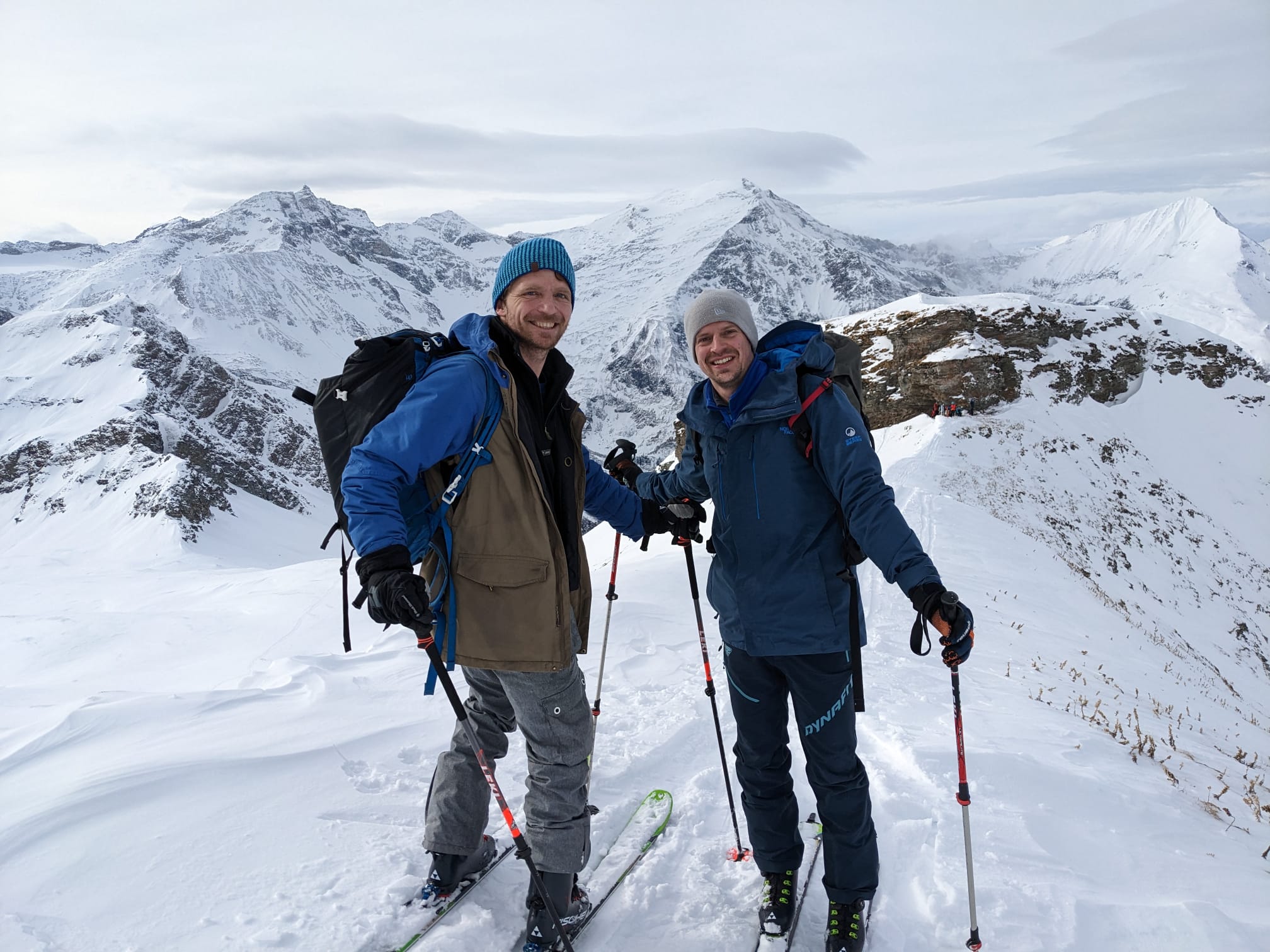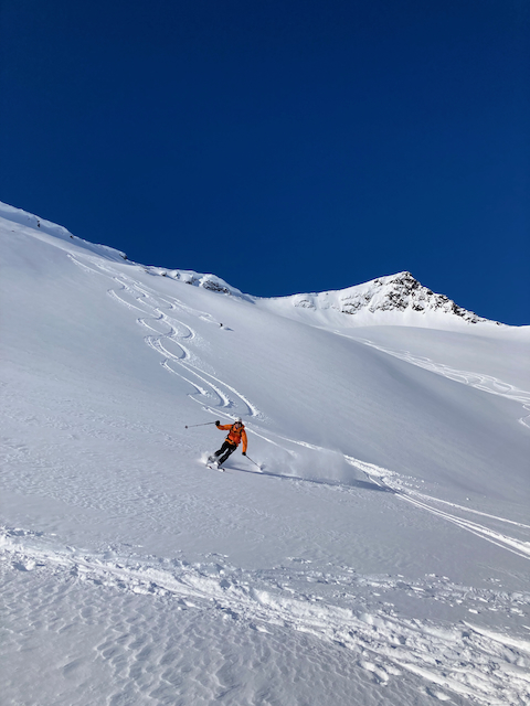 In Outdooractive als "Gletscherhatscher" beschrieben, aber in echt a wunderschene, doch lange Tour. Anseilen hod ma ned braucht, oben kurz vergangen, dann doch richtig nach rechts rum abgebogen. Am Gipfel a Gruppe Österreicher und Italiener droffa, de ham den Steilhang für uns vorgfahn. Leo und ich san dann obe, a wahnsinns Hang, hinten durch a gloans Joch durch und nomoi oans weida. Unvergessliche Hänge!