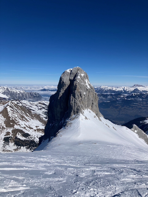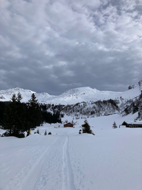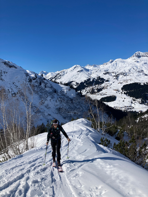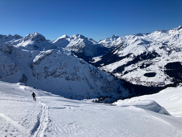 Nachdem ma am Dog davor mit Francis und Sophi Skifahn warn, woid ma no wos macha bevor ma wegfahn aus Lech. Aufstieg wie gewohnt, aber plötzlich vo na Pistn überrascht worn, de bei da Alp entlang vorbeiführt. Ned weida dragisch, beim restlichen Aufstieg warma aloa, Abfahrt oben herrlich, untn schwa und hoass aber insgesamt lohnende Tour. Danach hods leider den ganzn schena Schnee wieder weggschmoizn.