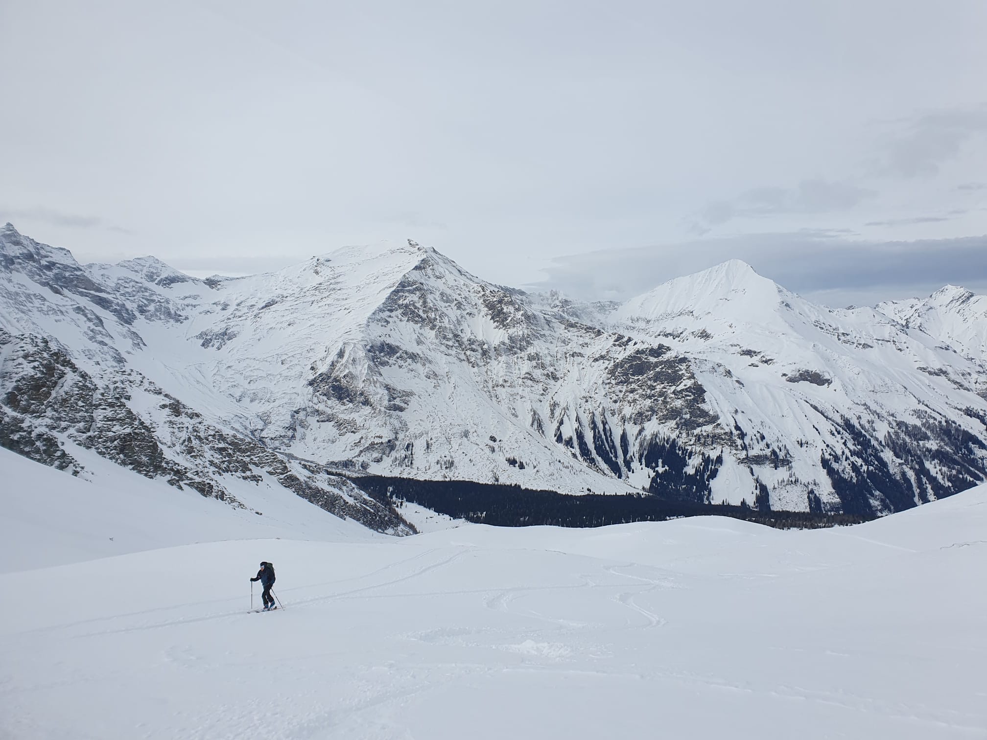 Da er letzts Jahr ned ganga is, woid ma heia aufn Hohen Sonnblick. Schneefall vo da Nacht davor hod a guad gnuage Unterlag fürn Aufstieg brocht, aber da starke Wind oben hod leider ois wieder verblosn. Ab Schutzhaus Neubau einige Lockerschneelawinen zum seng, als dann überhoib vo unserer Aufsteigsspur wos obkema is, samma wieder umdraht. Der eigentlich flache Rückweg war dann dermaßen eigwaht, dass des ned direkt a Spaß war. Wuidere Unternehmung, da ham de Tschechen beim Riffelkamm drüben definitiv mehr Abfahrtserlebnis ghabt.