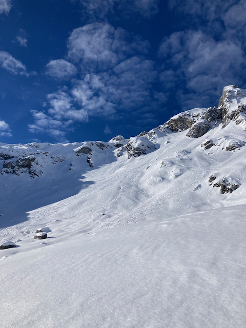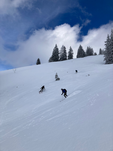 Traumtour bei Lawinen 3er mit Neischnee Problem. Nordhang am Gipfel war stark verspurt, deswegn no mitgnumma, richtig geil mit knietiefm Powder. Da Lodron gegenüber warad a a guade Alternative gwen bei dene Verhältnisse.