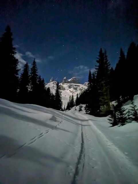 Nachtzustieg, koa Niederschlag und heller Mond