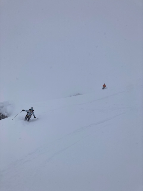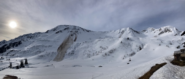 Ziemlich ähnlich wie am Vortag, hart gfrorner Schnee, aber Abfahrt doch meist besser als erwartet.