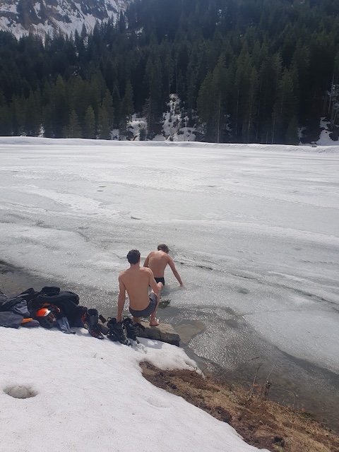 Über Nacht wieder einiges abgstrahlt und sogar an Hauch drauf gschnim, dadurch Abfahrt vom Hählekopf erstaunlich guad! Unten auße weniger und bazigerer Schnee, aber nach kurzer Tragepassage im Wald guad bis zum Parkplatz durchkema. Kurzes Eisbad im Stausee vor da Piste a no mitgnumma. Insgesamt a lässigs Osterwochenende mit na subba Gruppn!