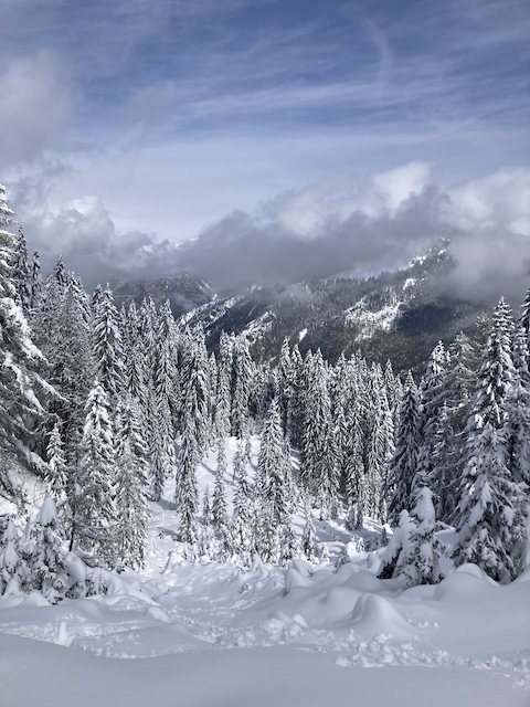 Kurz hinter da Kirch is mit Ski ganga, unten no guada Buiver sogar, oben immer weniger dafür mehr windpresst.