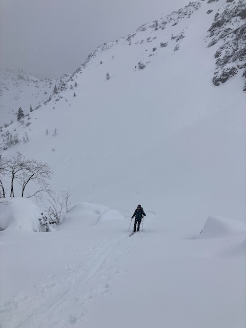 Entschieden no wos kurzes zum macha, Aufsteig Richtung Drusentor, Abbruch kurz unter Steilstück. Gseng hod ma ned vui, da Schnee war aber geil. Korbi Sofia Dani und Striez san bissl eher los, Rest is den Hang bei da Hüttn nomoi aufe. Runter hod ma bis kurz vorn Gasthof fahn kinna, des war geil!