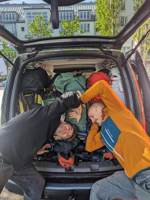 Langer Zustieg, der zum Glück abgekürzt werden hod kinna, weil ma mim Auto (fast) bis zur Kirch fahn hod kinna. Vorbei an extrem kläffende Hund und der Spur vo 4 Schweizer Mädels folgend über de Altihut zur Betlemi Hut. Gletscher seilfrei, koa Problem. Aufm Weg an Archill droffa (erster Georgier aufm Nanga Parbat), der uns sogar mit in den Bergführerraum mit Ofa gnumma hod. Deutlich bessere Nacht ghabt als erwartet, obwohl de Spaghetti a reiner Baaz warn. Da warme Schlafsack hod si trotzdem rentiert!