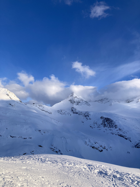 Großvenediger bis jetzt nur vom Defreggerhaus vo da andern Seitn im Sommer gseng, erste Skitour aufe. Gmiadlich nach alle andern um hoibe 8e los ganga, nach knappe 4h aufm Gipfe gwen. Gseng hamma ned vui, aber a Schau wars drozdem! Wahnsinns Powder Turns direkt obe bis fast zur Postoim. "Gmiadlich" ausklingen lassen im Lichtl in Kitz.