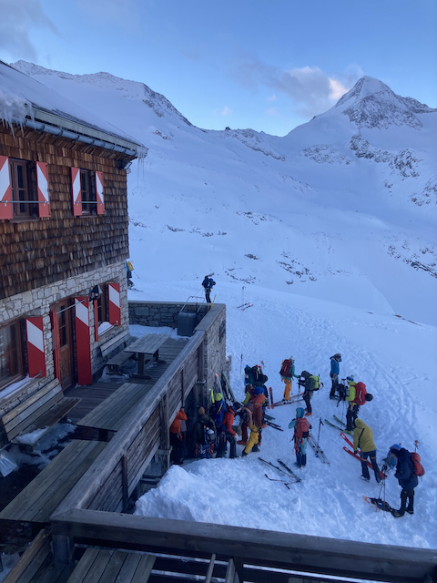 Eigentlich war Haute Route geplant, aber da in de Westalpen sau schlechts Weda war, samma an Venediger ausgwicha. Spontan no 5 Plätze auf da Kürsinger Hüttn griagd, a Traum. Hüttentaxi vom Hopffeldboden war scho relativ voi, de Mädels und unser Gepäck hod aber no Bloz ghabt. Bis zur Postalm in 1h 15min grennt, dann gmiadlich zur Hüttn. Super Essen obwohl mit Sauerkraut, aber erst moi 15 Getränke bstoid :D Absolut geiles großes Zimmer 1 ghabt, coole Hüttn insgesamt.