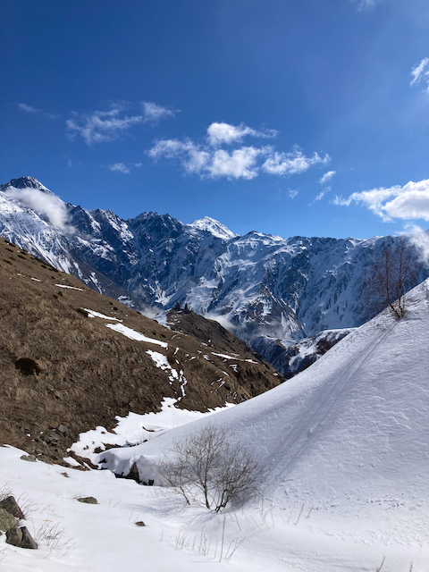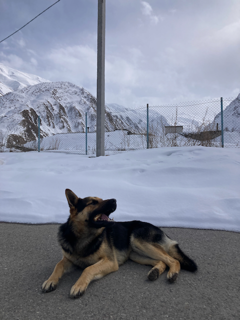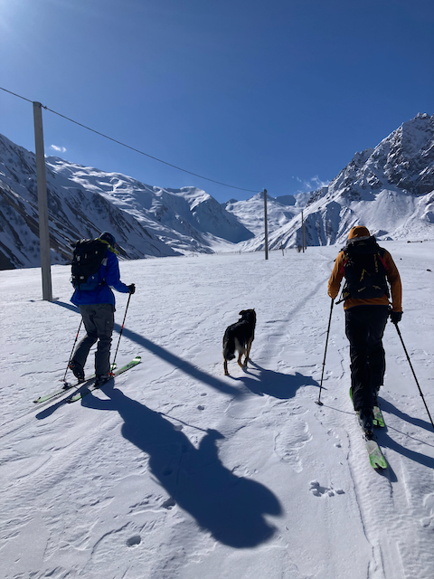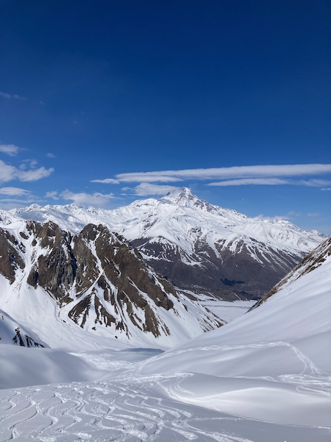 Erste Skitour in Georgien, ein absoluter Traum. Super Tour, obwohl ma am Anfang a weng eine hatschn muas. Da Joni, a Straßenhund, hod uns begleitet und is aufe wie obe grennd. Top Ausblick aufn Kazbeg, da hamma scho gmerkt, dass evtl schwa wern kannt weils brutal eisig ausgschaut hod.