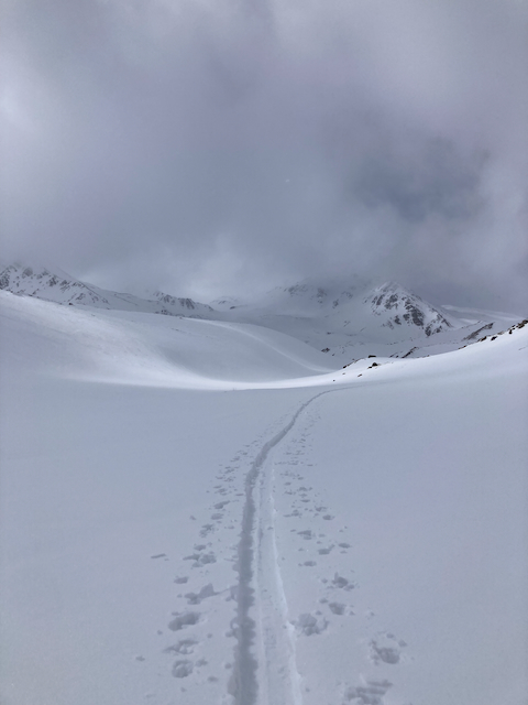 Wunderschene Skitour am St. Bernard Pass, fast ois mit Harscheisen ganga weil ois sehr gfrorn war. Oben no am Hannibal Pass vorbeikema, do sans anscheinend mit de Elefanten drüber. Abfahrt war besser als erwartet, weils unten wo d Sonn am längsten einegscheint hod, doch sche aufgfirnt hod.