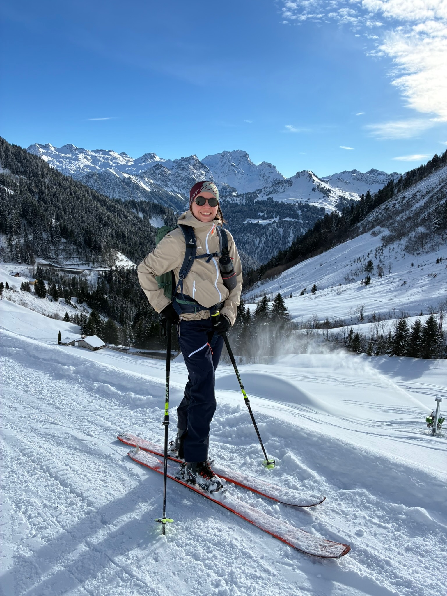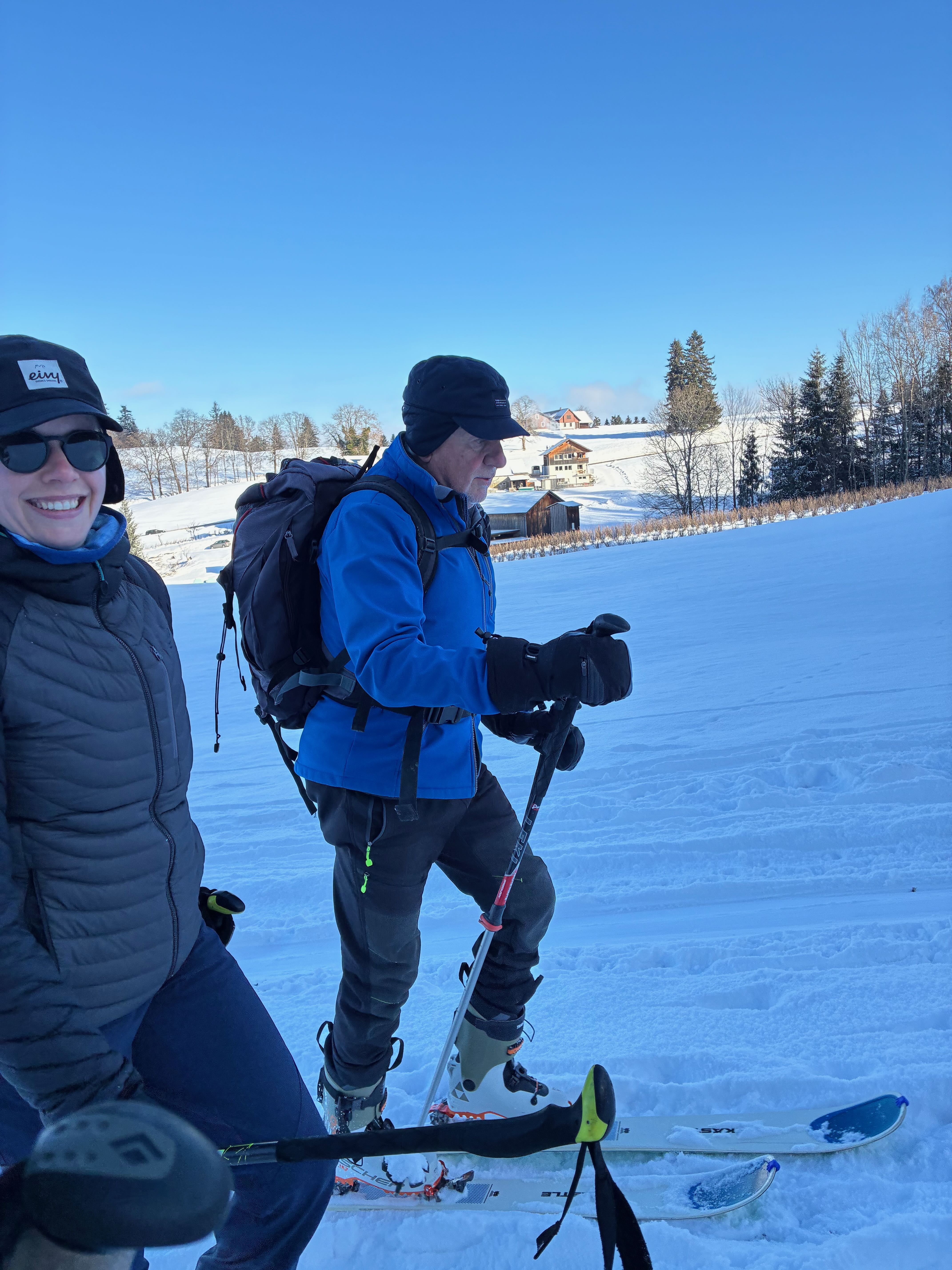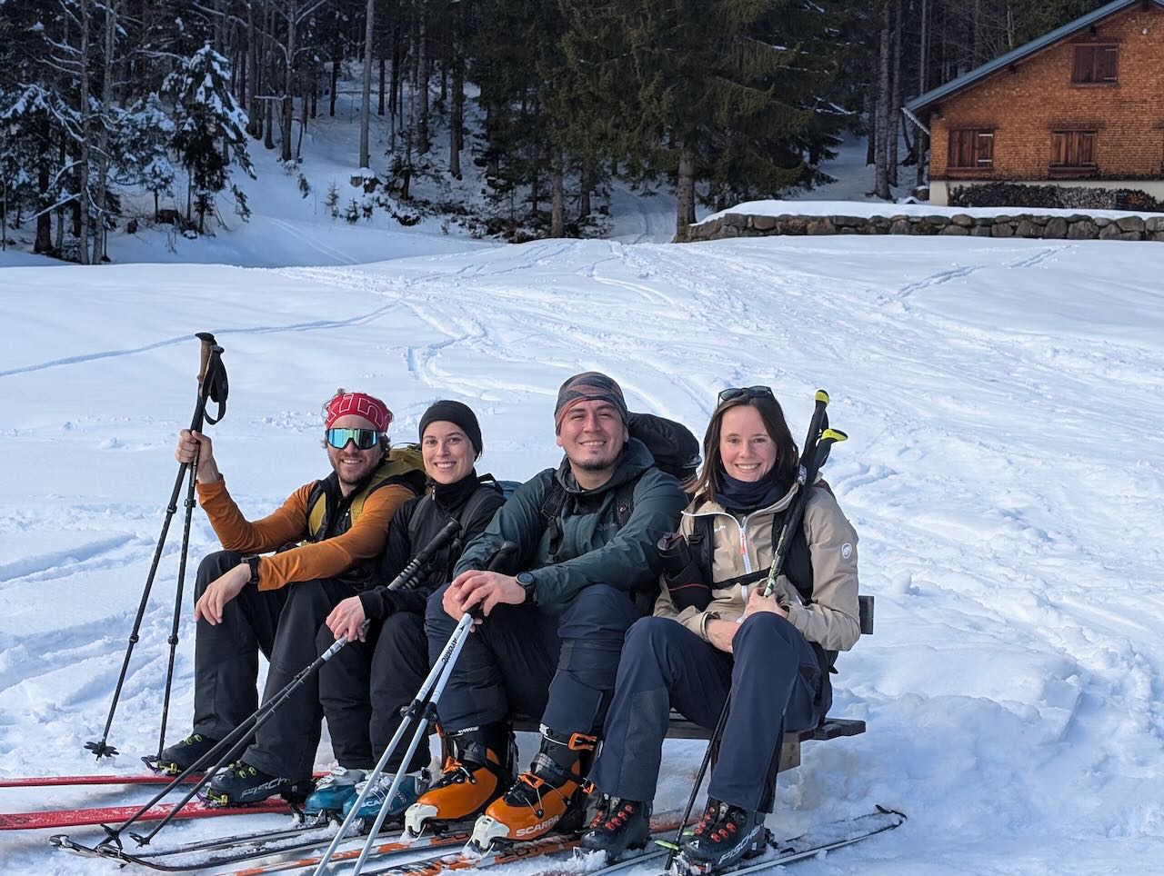 Sonntag is Pausedog von unserer krassn Baustellnwoche! Über Nacht hods doch a weng wos hergschnim, aber durch de warmen Temperaturen von de Wochen davor hods scho relativ vui weggschmoizn. Desweng hoch aufe nach Damüls, dort hods no a Unterlag. Portlahorn is ganz guad ganga, Abfahrt rechts ghoidn nachm Loch und unten dann wieder auf d Aufstiegsspur kema. Dann bei da Straß direkt obe ins Loch, umbaun und aufe Richtung Damülser Horn (wie da Martin früher). Bis kurz vor des ganz steile Stück bei de Felsen ganga und nomoi a herrliche Abfahrt ins Loch genossen. Der kurze Gegenanstieg zur Straß is nur 15min und duad ned weh. Abgerundet durch Besuch bei da Kiki, richtig cooler Pausedog!