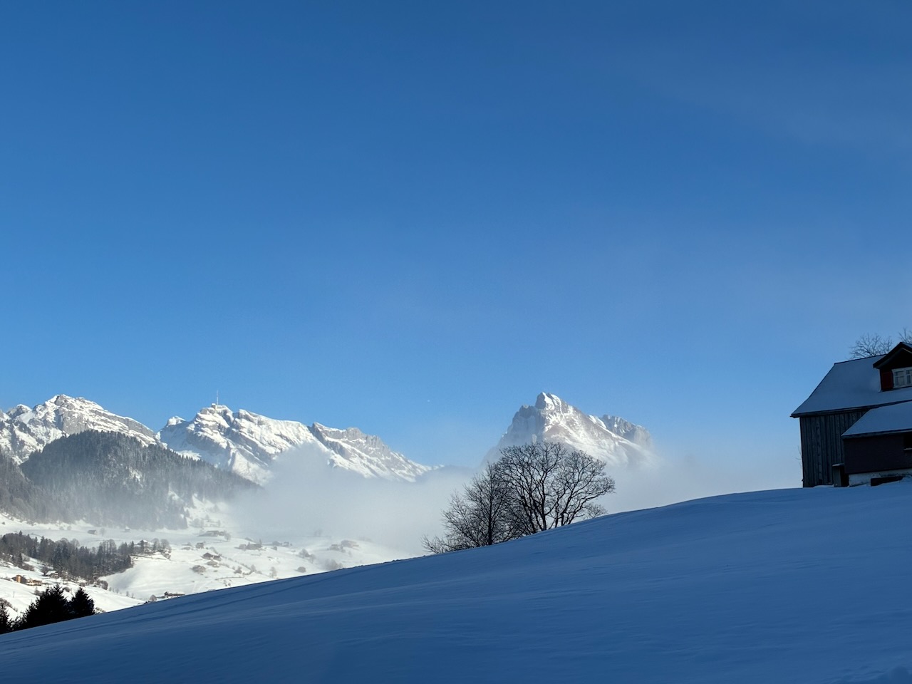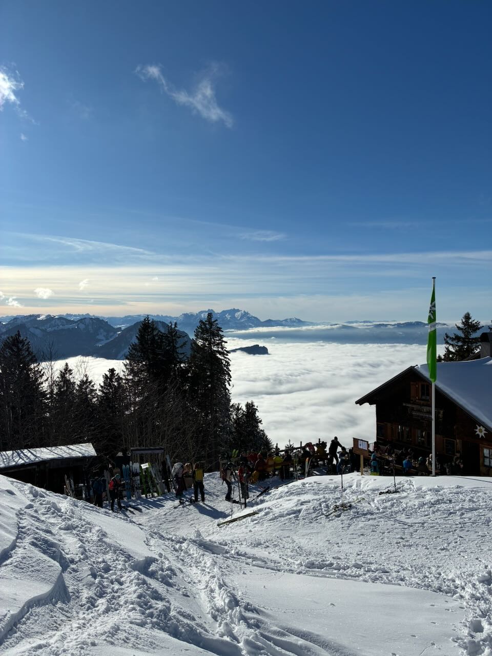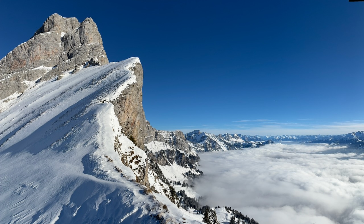 Guade Entscheidung den Brückendog no zum nehma - a Traum Tagerl quasi aloa in de Schweizer Berg überm Walensee. Laut Beschreibung muas ma auf Karsthöhlen aufbassn, desweng relativ nach am Brisi hoitn beim aufegeh und obefahn. Ausblick oben is a Traum, unten da komplette Nebe drin. Bei da Abfahrt dann 2 alte droffa, de ham gsogt besser über de Loipe nach Sellamatt fahn (geht super) und dann unten wieder ume queren - wunderbar funktioniert. Parken hobi direkt in Horb derfa, nette Leid und nix los. Super Tour! Brotzeit beim Moosbrugger Käslon in Altach beim Kreisl ghoid: "mia san koa Jausenstation, gö!" :D