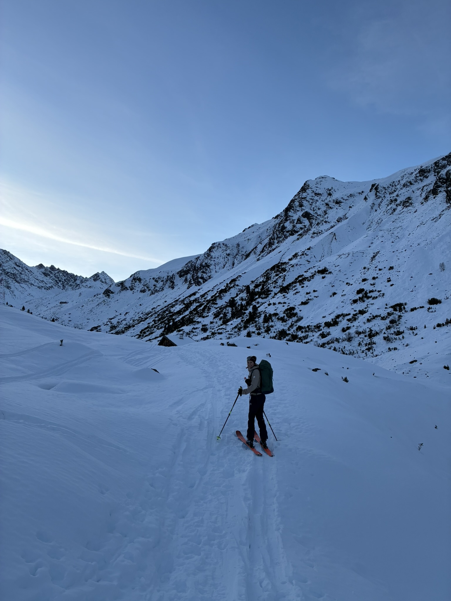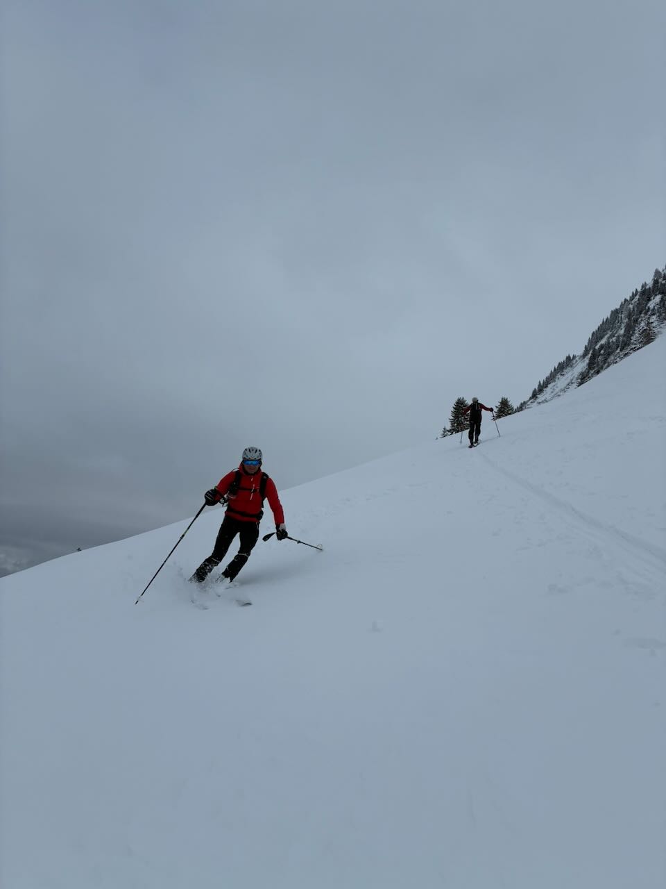 unten dürftig aber grod so abfahrbar über "Piste", vui wichtiger is de Straße, sonst hätt ma durchn Woid drong miassn. Bis zum Isisizgrat durchwachsen, dafür hinten a absoluter Pulvertraum! Der Gegenanstieg lohnt sich!