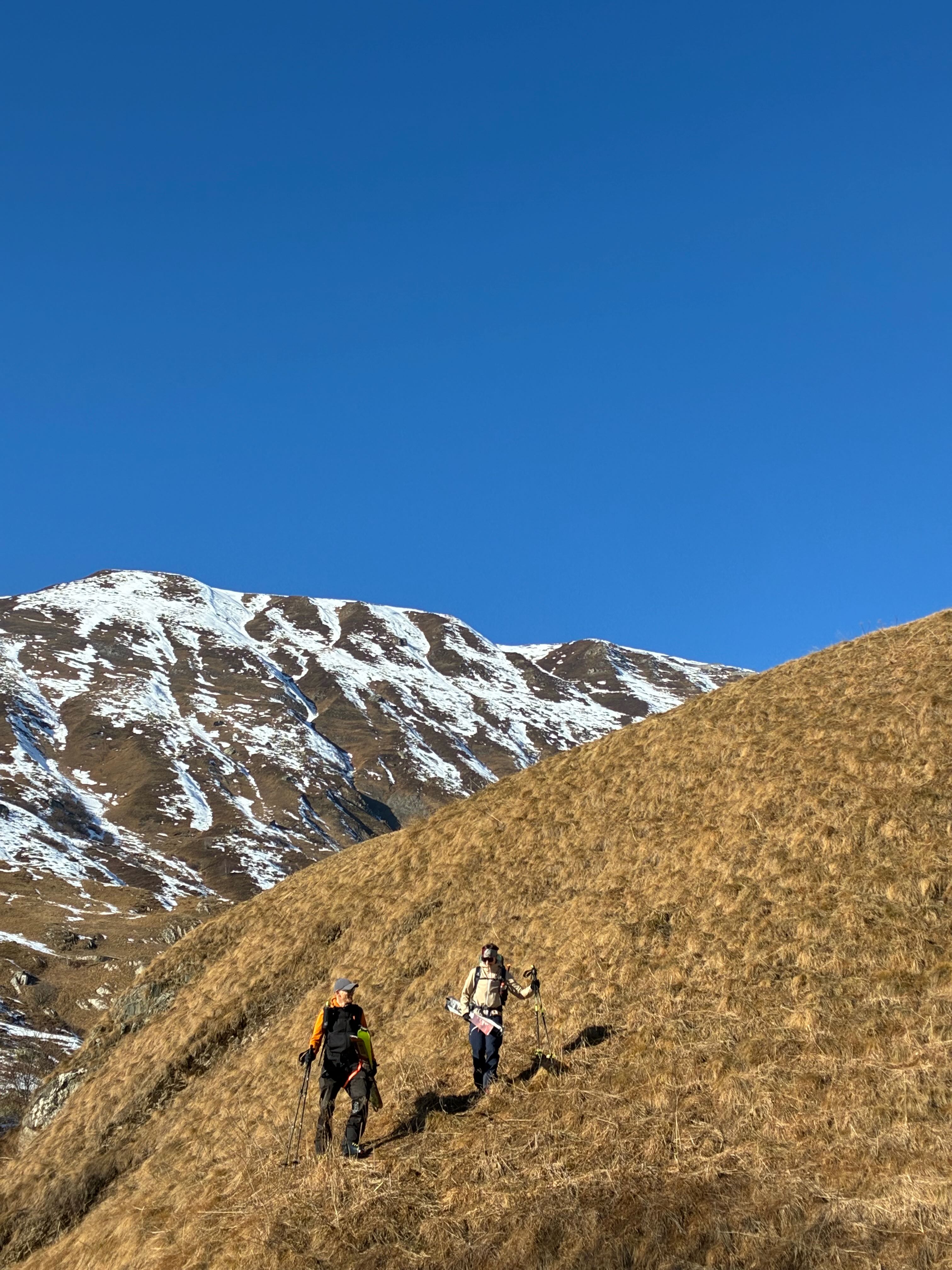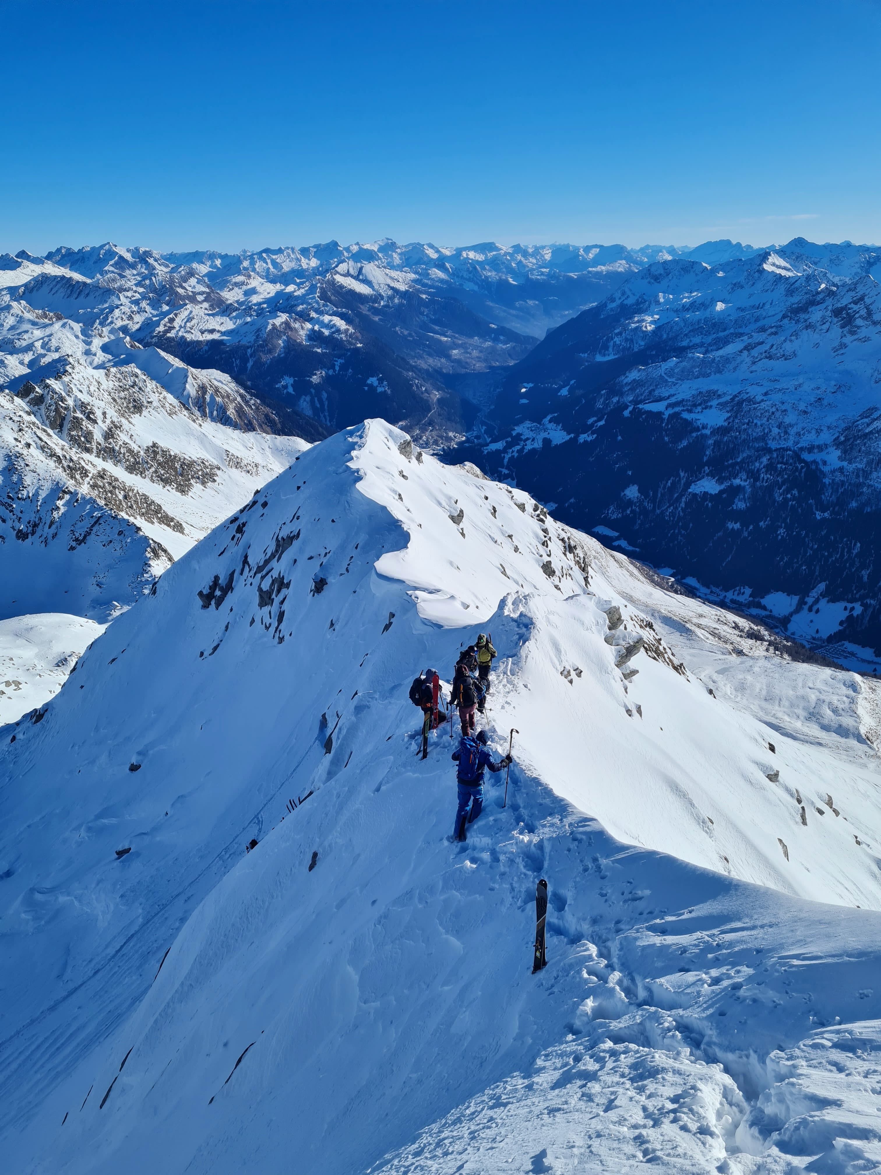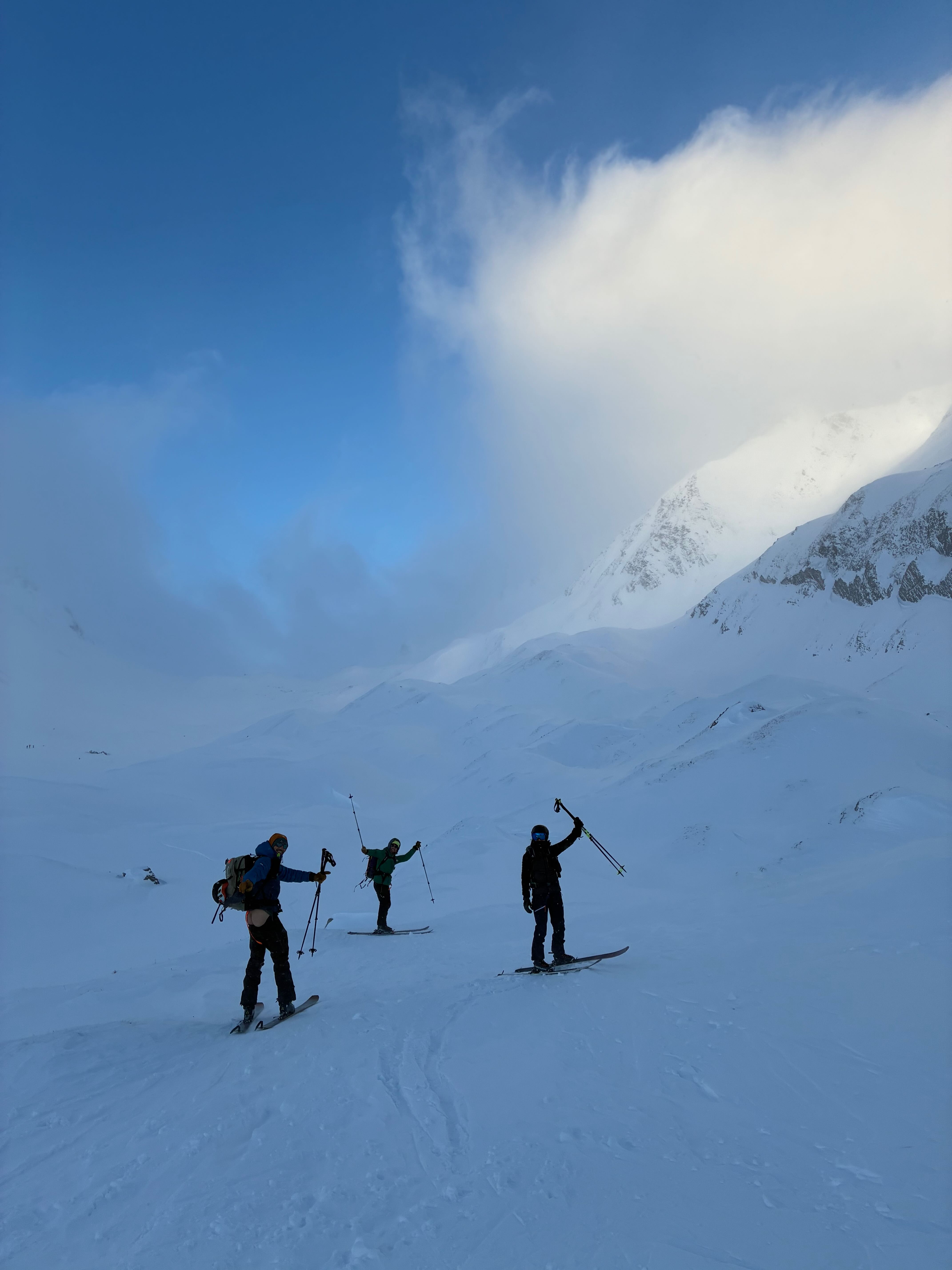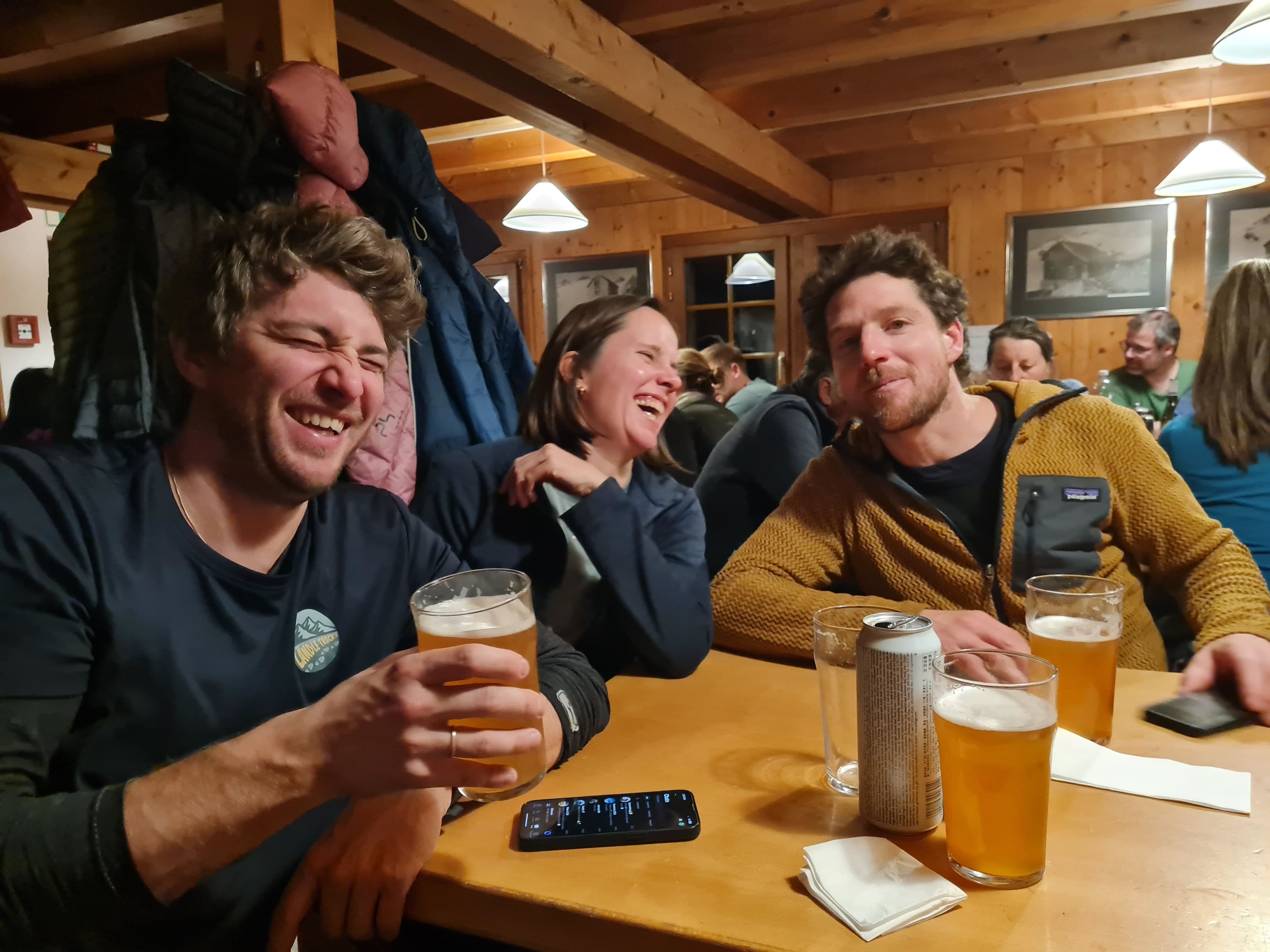 Auf zum Pizzo Lucendro! Erst moi schene Abfahrt mit Nasenbluten ins Loch, dann Aufstieg in die Scharte mit a boa andere und hinten rum zum Skidepot. De letzten Meter z Fuaß zum Gipfe, dann mit de Ski den steilen Hang obe, inkl Leos Ski-Sprung-Pfurz! Wunderbare Abfahrt, fast immer no mit na neia Spur in Buiver. Ursprüngliche Idee zum Hüenersattel rüberzuqueren hod ned funktioniert, deswegen abm Loch aufe Richtung Witenwasserengletscher. De andern san dann no aufe, Samy und i zruck Richtung Hüttn - a sau schene Rundtour! Um 5e hods dann Aperó vo de Wirtsleid gem mit gratis Glühwein und Snacks, a absoluter Traum. Nach ca. 6 Weißbier pro Person und 2,5L Wein de ma aufadrong ham, war's dann endlich soweit: 2026! Außer uns warn nur no de 3er Gruppn neben uns und de lustigen Schweizer auf, a brutal lustiger Abend :D