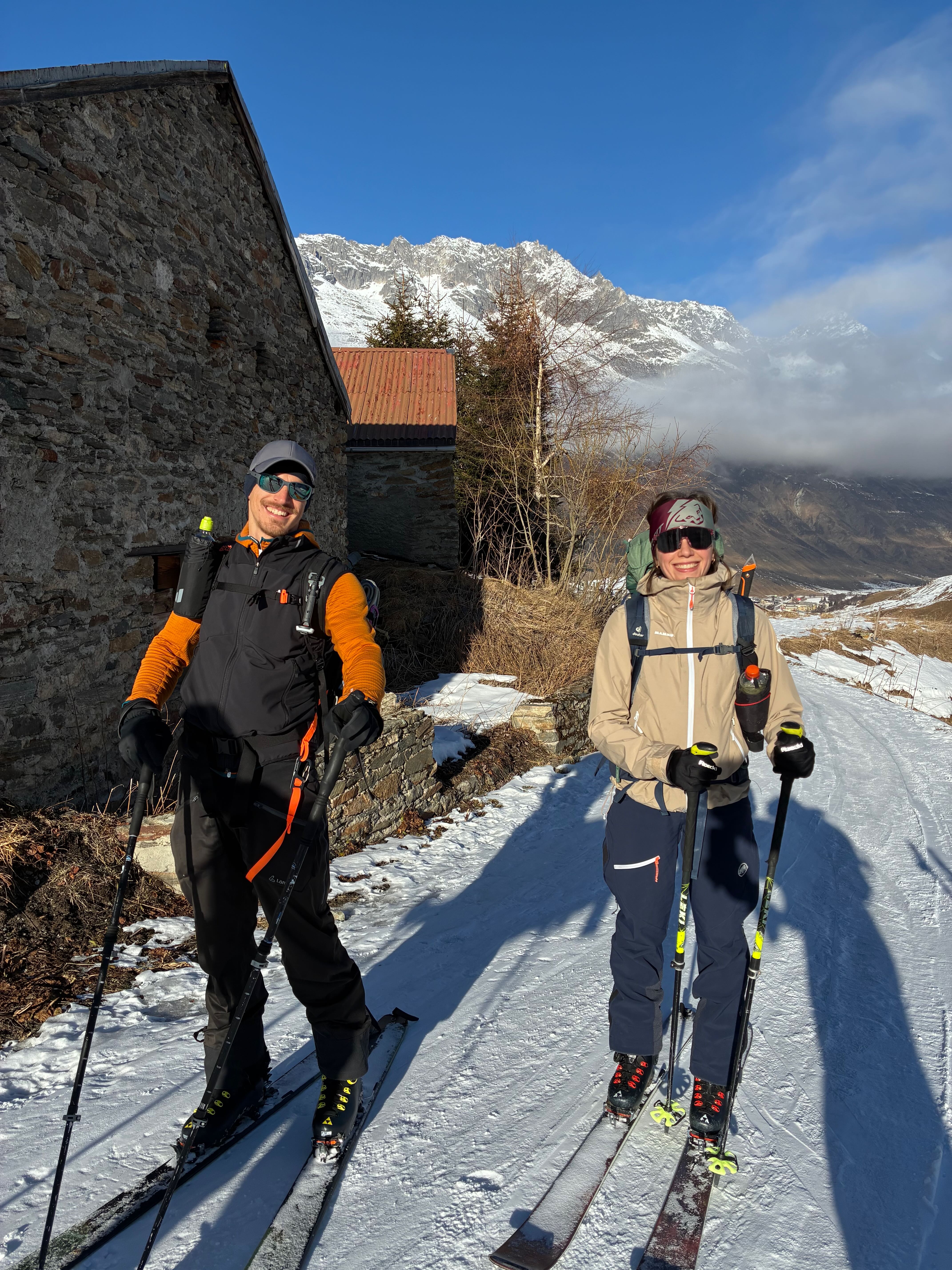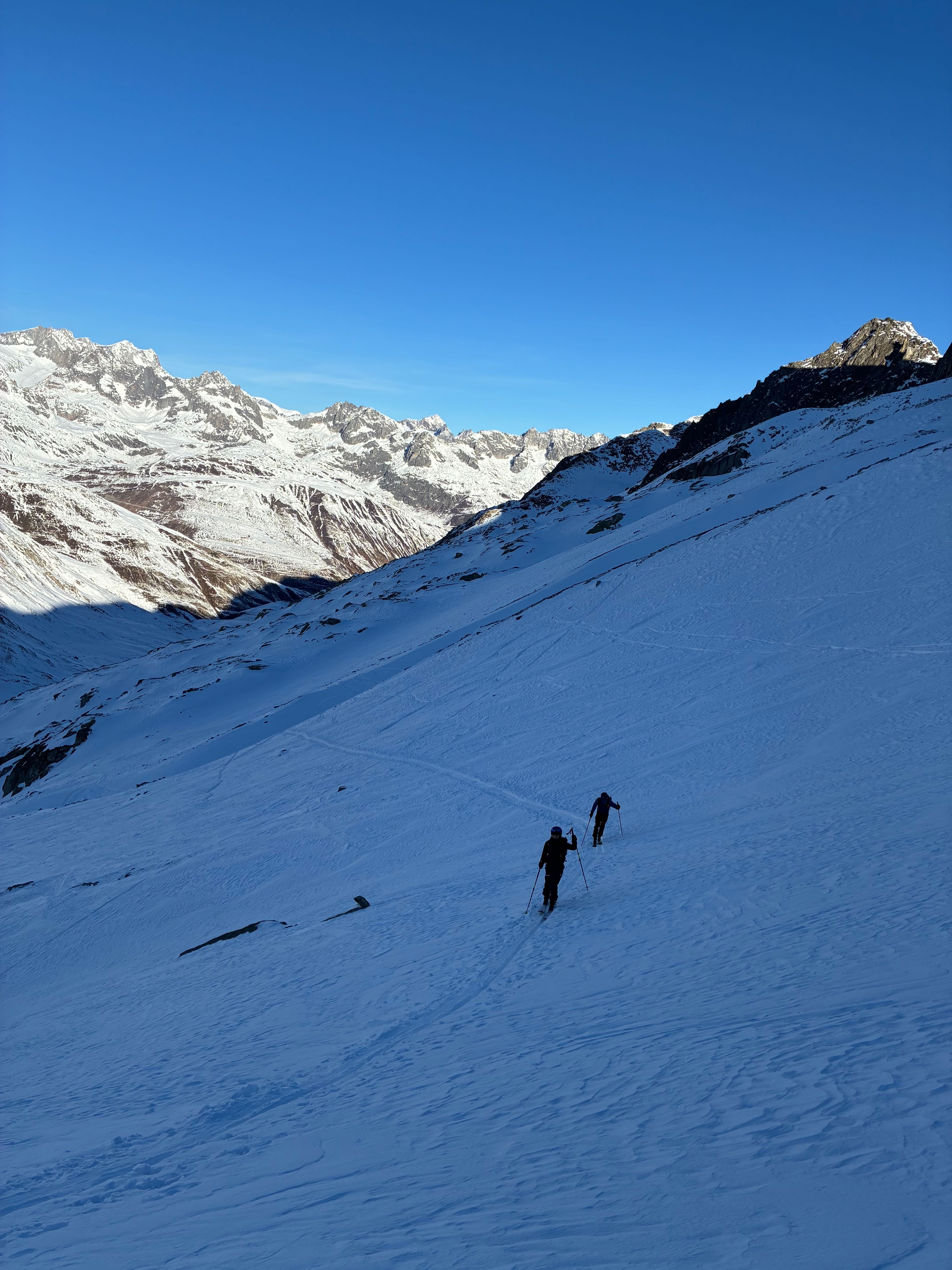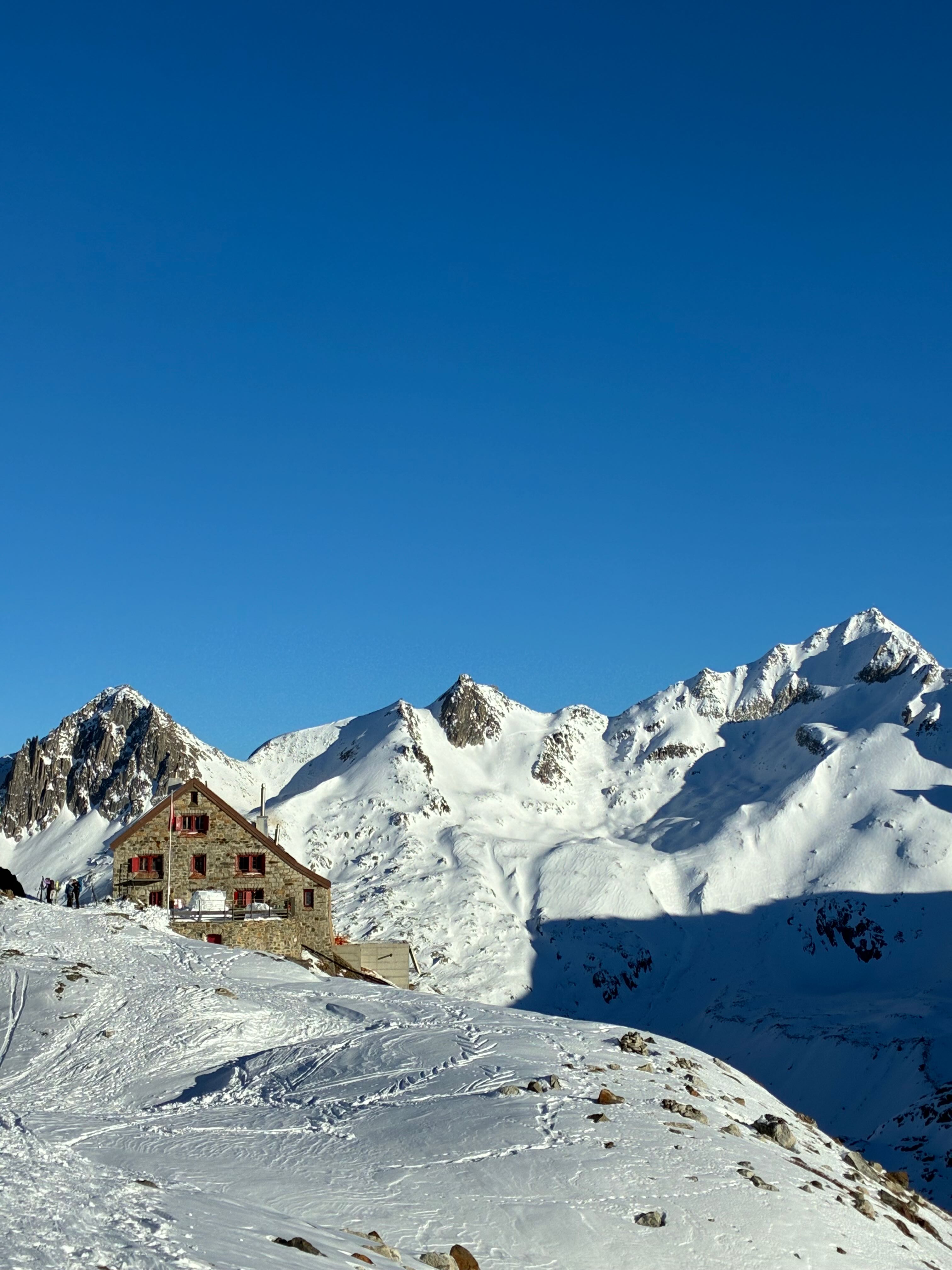 Mia san wieder moi auf Skisafari! Nachdem lang ned klar war, wos ma überhaupt machan, hamma uns am 28. dann entschieden, Silvester auf da Rotondohüttn zum vabringa. Stef hod an Insta Post gseng, wos ghoassn hod, dass ma scho wos macha konn - und wia! Zunächst war aber s Parken in Realp relativ deia, 76€ für 5 dog und 4 Nächste, des kannt ma besser planen z.B. davor iwo parken und dann mim Zug nach Realp - naja vlt beim nächsten moi. Zustieg zur Rotondo war mit 10km relativ lang, aber sehr guad machbar und sau sche. Hüttn is a a Traum, guads Essen und a Weißbier für 8 Fränklis griagd.