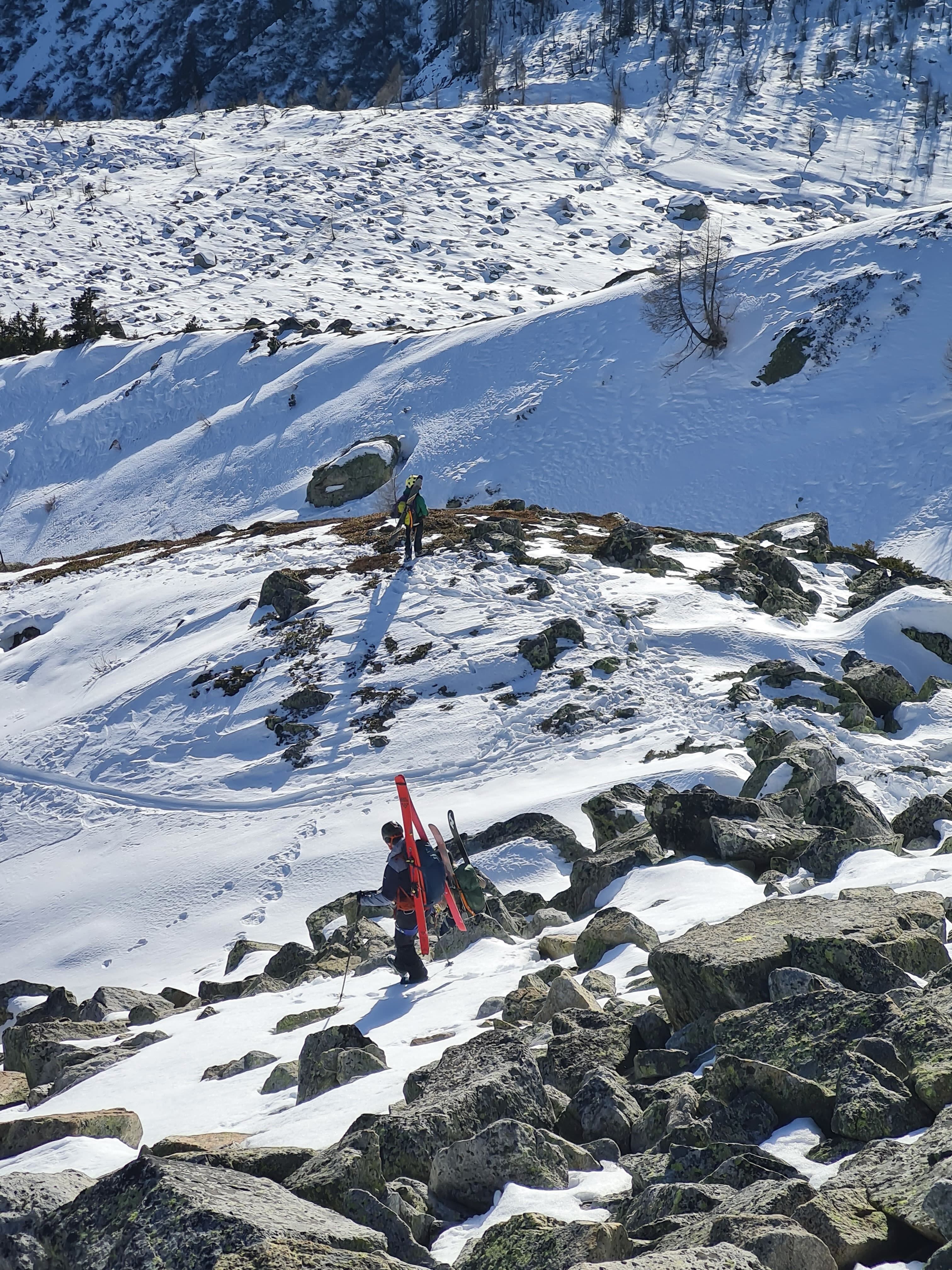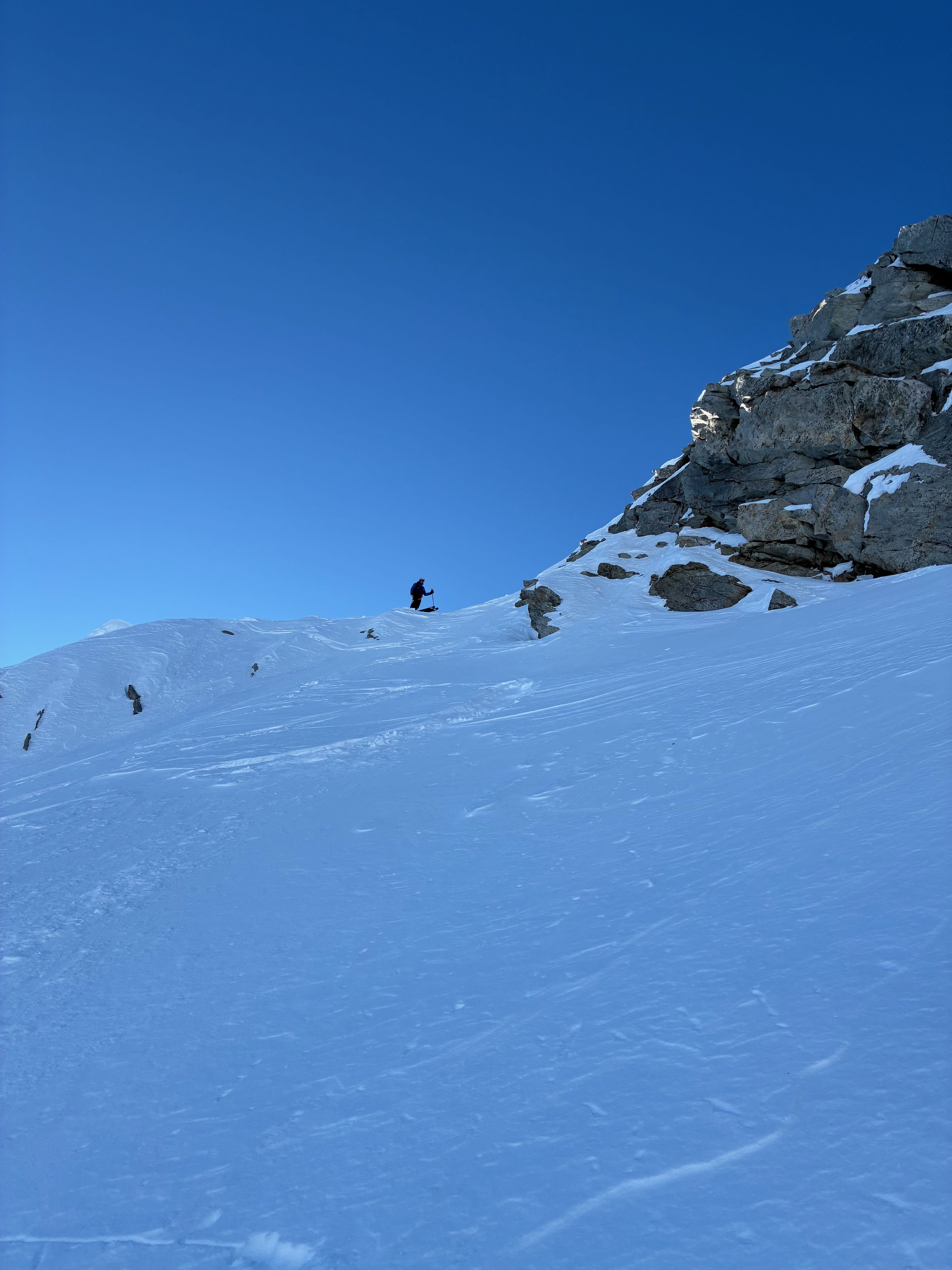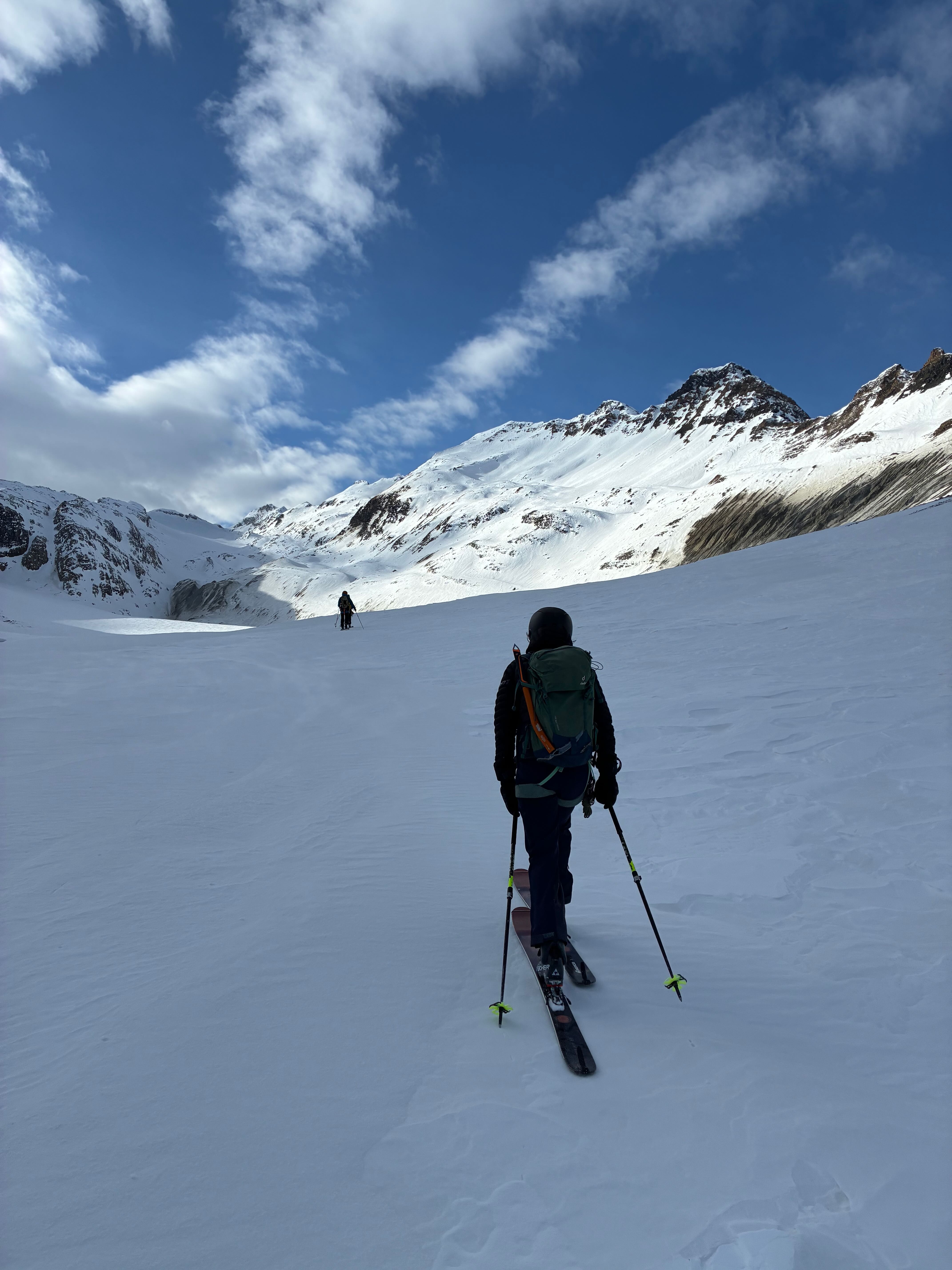 Aufstieg zum Rotondopass spuren miassn, teilweise Pulver, teilweise windpresst, Südseite ins Bedrettotal runter war dann unten raus sau wenig, ca 30min tragenn durch Stoana bis zur Hüttn.