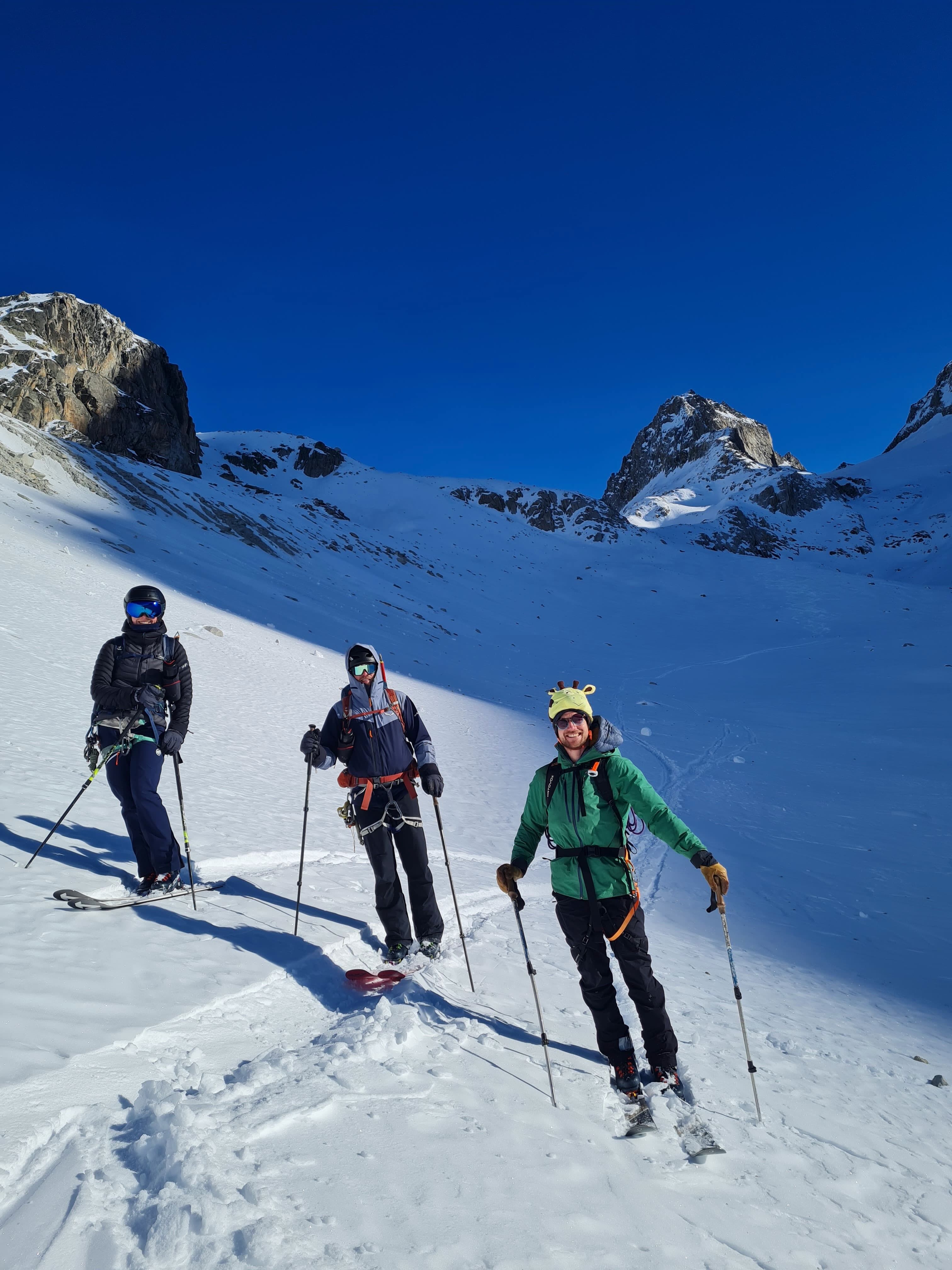 A guads Neis! Zwischen Übelkeit und Kopfschmerzen des Todes direkt um 8e los Richtung Capanna Piansecco - de Zigarettn hädn vlt doch ned alle sei miassn, aber Ibu 600er regeln das. Erste Abfahrt war tatsächlich richtig sche und nachdem as Kopfweh nachlassn hod, war i dann a iwann aufm Rotondopass drom. Südseitig is dann irgendwann gar gwen und mia ham über felsiges Blockgelände de Ski de letzte hoibe Stund zur Hüttn drong. De war sau sche, modern und mit gratis Dusche, a ned schlecht. Nur as Essen war uns für a Kodadog zgsund :D