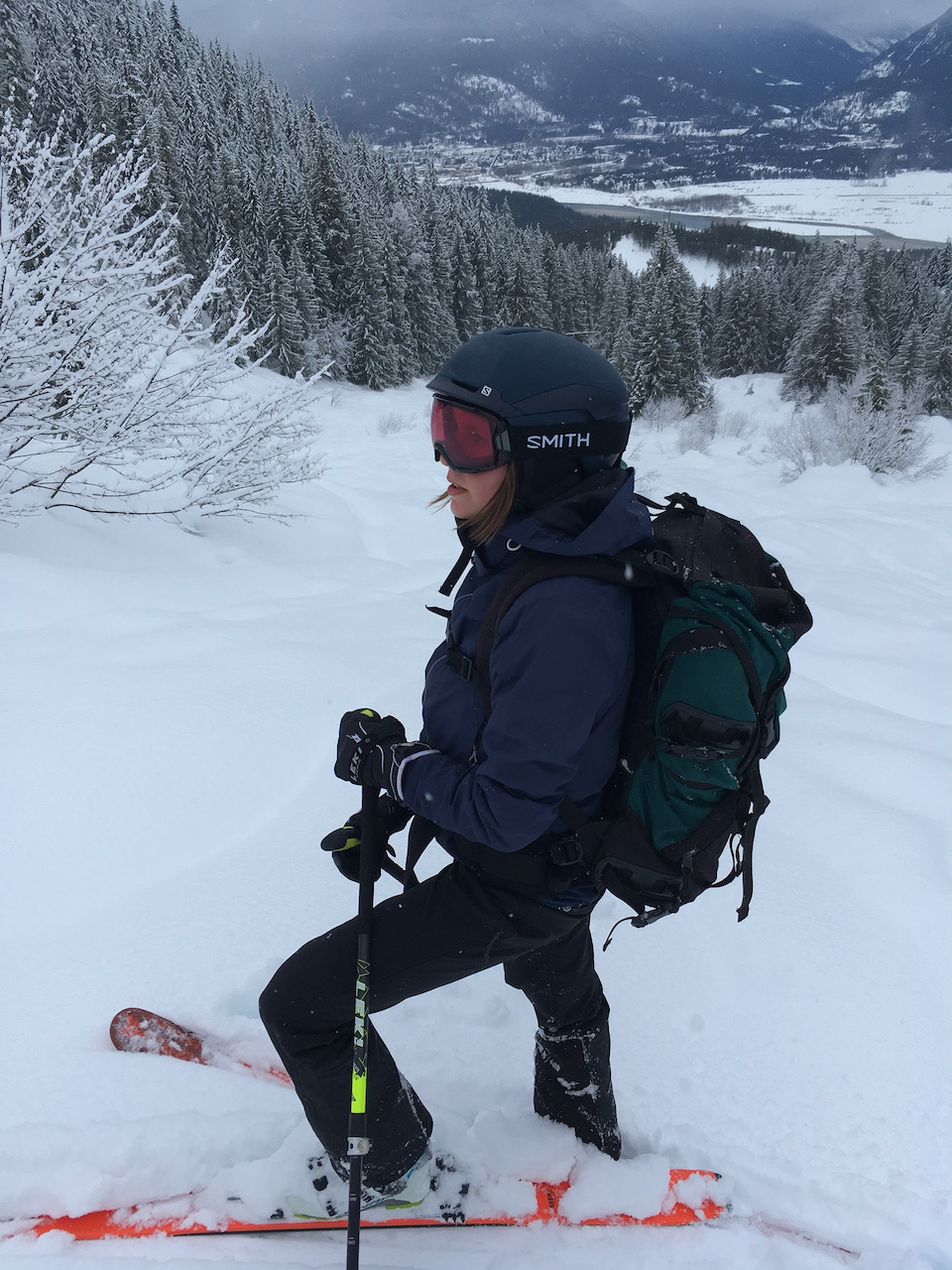 Start beim Crosscountry Skiing Club 7km von Revelstoke. Unsicher woma auffe san (whrs The Womb). Spur durchn Woid gfolgt ohne zu wissen wohi, dann endlich auf a Lichtung droffa, Checkpot! Ned ganz auffe ganga (im flacheren Teil blim) wega Lawinen 3er.