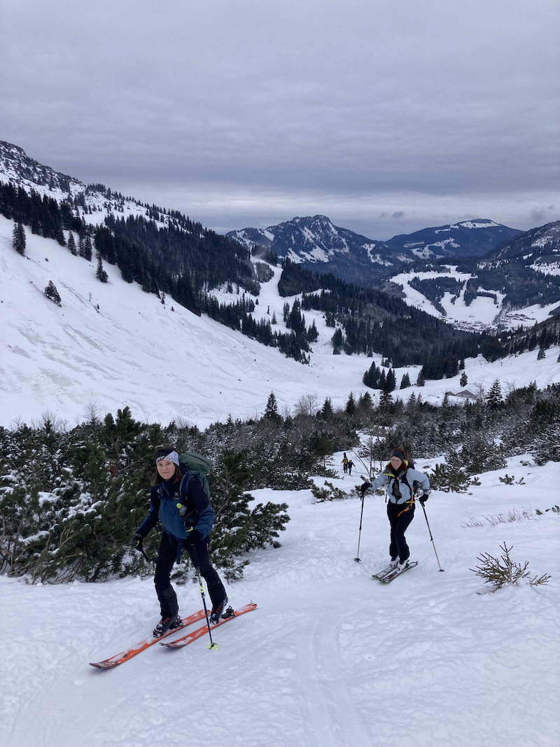 Da Hackl Helle hod gsogt im Koasa dads no geh hinten drin, aiso mit de Alten an da Griesner Oim droffa nach relativ langer Anfahrt über A8 und Kössen. Nur im Woid a weng gring, sonst brauchbarer aber ned bsonders guada Schnee. Cooler Aufstieg und einige Tourenmöglichkeiten da im Griesner Kar. Tolle Tour und schena Ausblick - abgerundet mit Tee und Kuacha am Auto!
