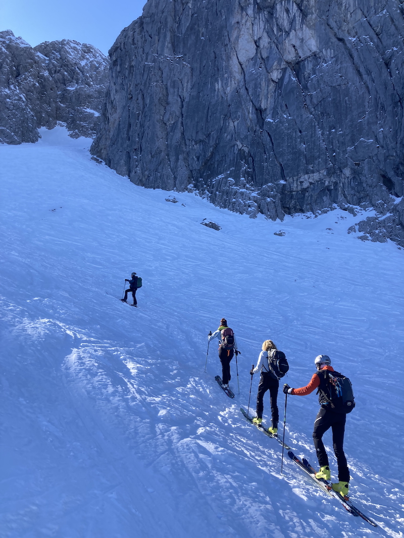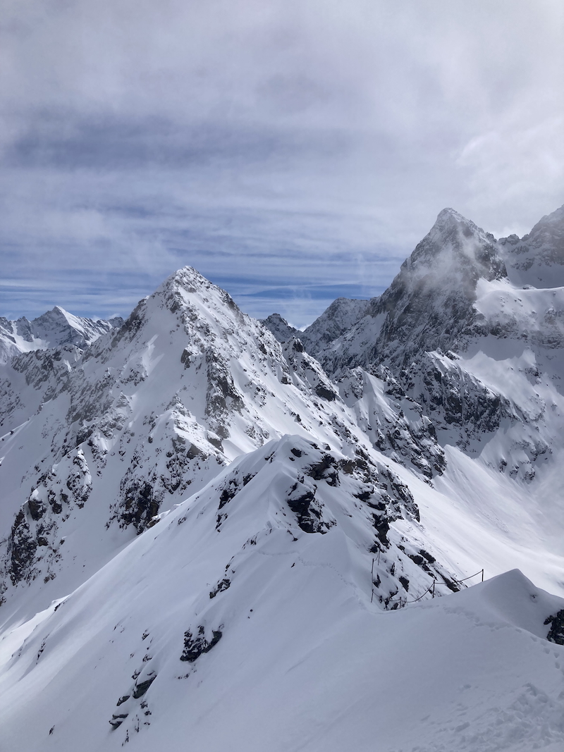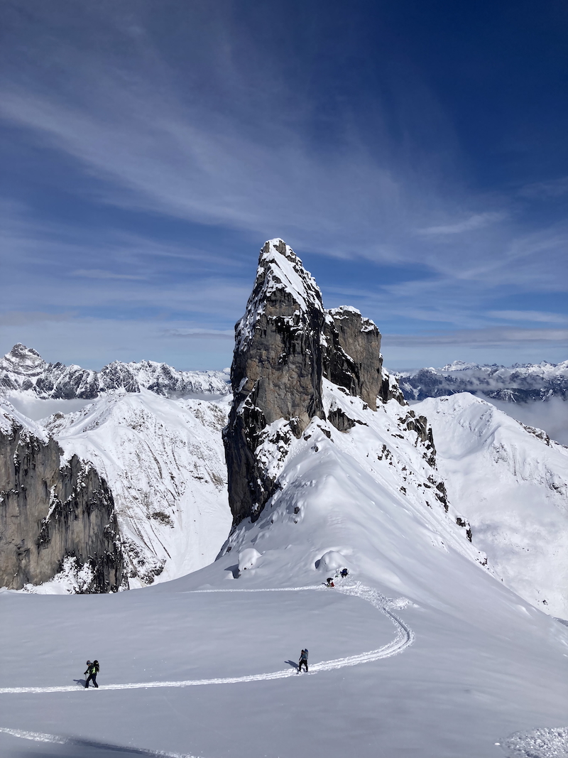 Vui gnua Schnee hods ghabt, guada Stapfschnee am Grat, schena Firn zum Abfahn.