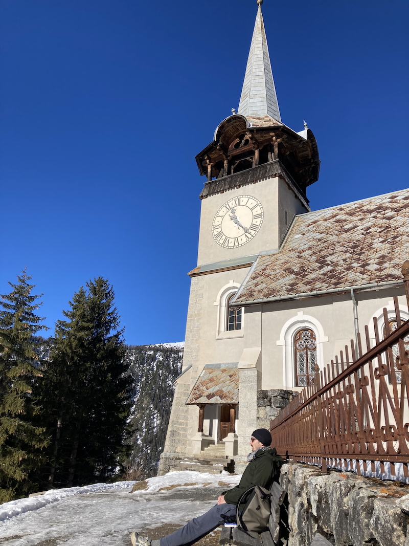 In da Nacht scho ned guad pennt, relativ zeitig aufgstandn und wieder nach Monstein gfahn. Beim Mäschboda is nimma ganga, i hob umdraht und mi bei da Kirch no a weng in d Sonn gsitzt. De andern san no aufs Büelenhorn aufe.